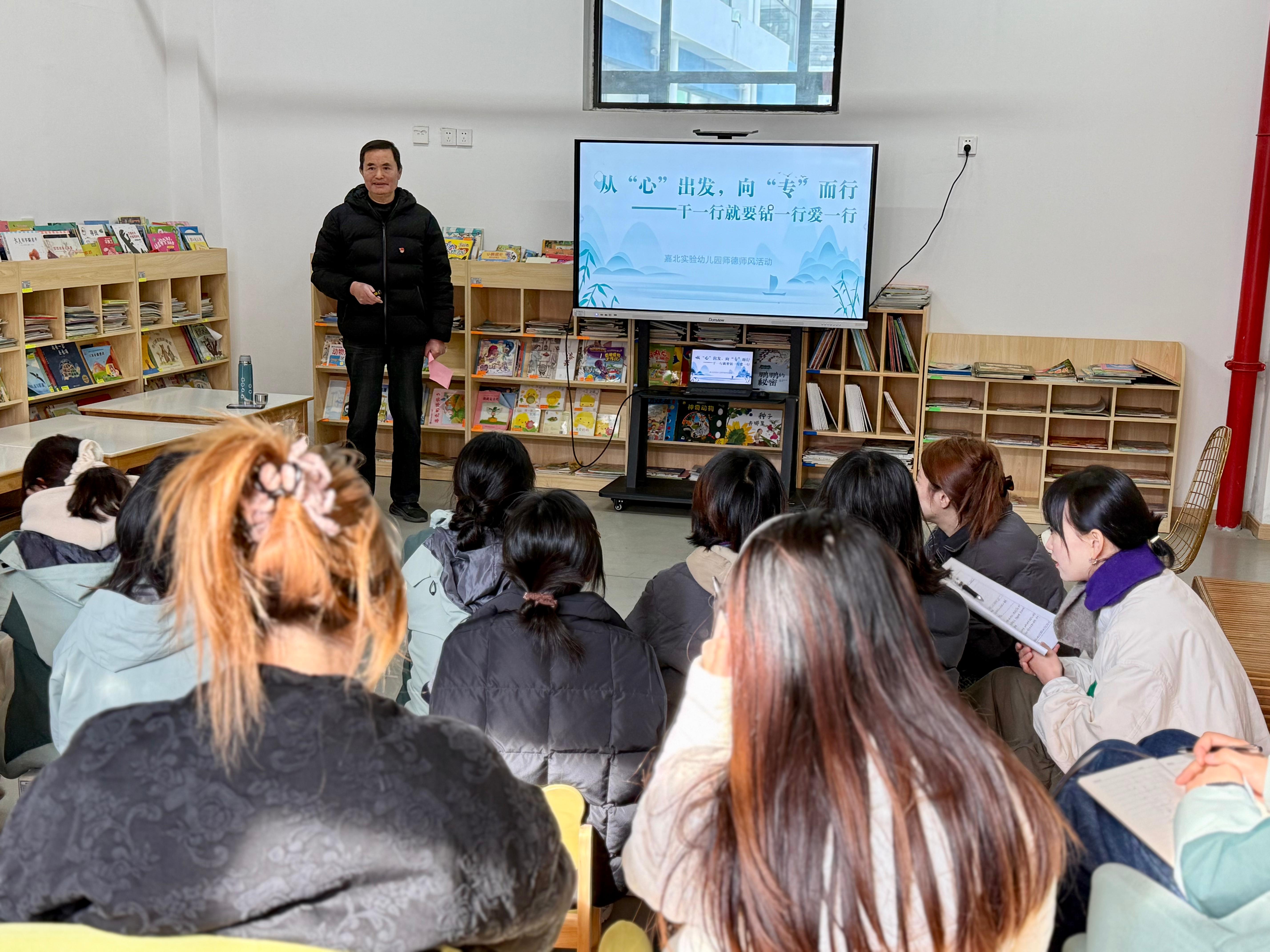 12月29日,嘉兴市经开区嘉北实验幼儿园全体教师齐聚一堂,共同聆听了一堂别开生面的师德专题课。本次活动主讲人欧福泰,既是嘉兴市党建引领专家团成员,也是嘉兴市新闻传媒中心老报人红色宣讲团负责人,以数十年新闻从业经历为底色,为嘉北实验幼儿园的老师们带来了一场跨界的职业启迪与师德浸润。