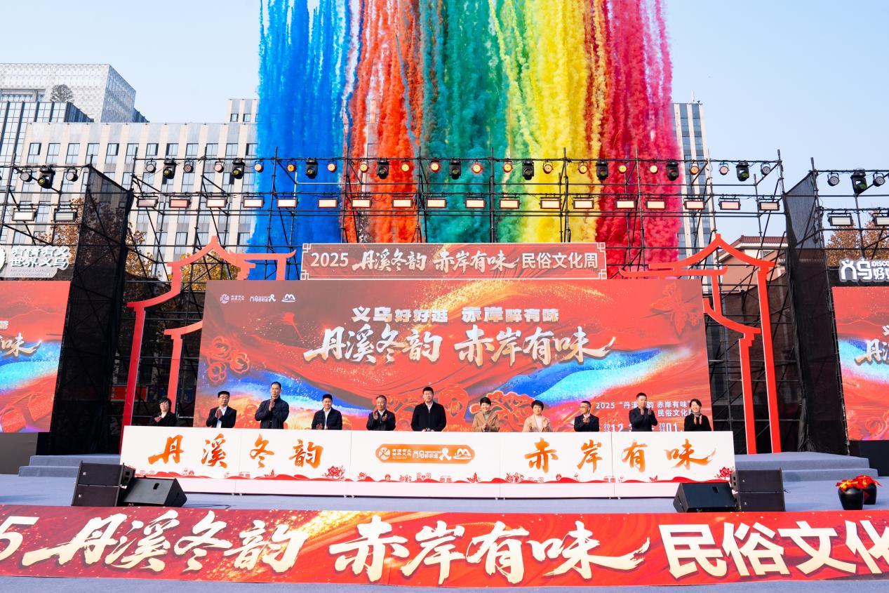 社区文化网(通讯员:刘颜)锣鼓声划破午后晴空,龙狮舞动映照冬日暖阳。12月30日下午,义乌市赤岸镇“丹溪冬韵 赤岸有味”民俗文化周正式启动,华川南路主街区化身为流动的民俗舞台,蜿蜒的踩街队伍沿着街巷缓缓行进,引来数千居民驻足喝彩。