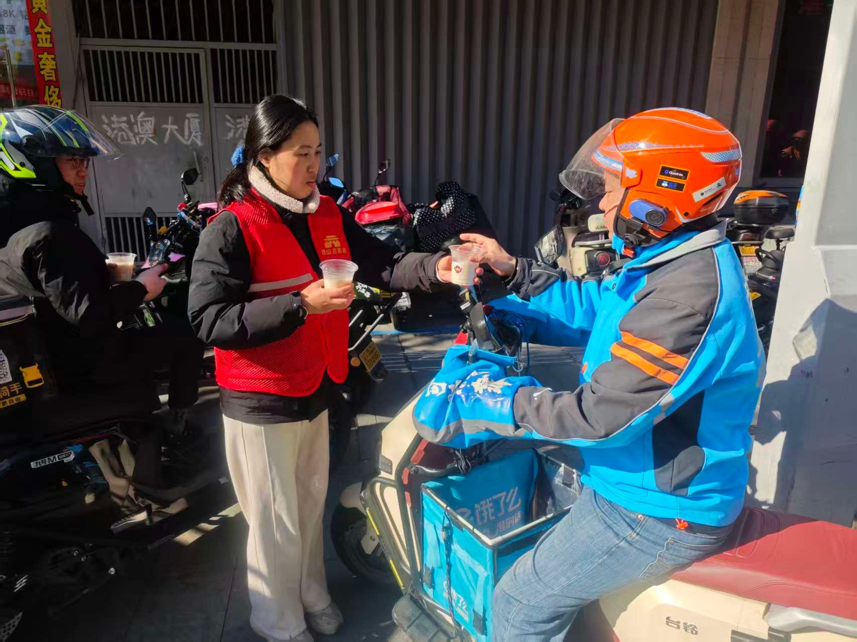近日,嘉兴市南湖区瓶山社区主动发起关爱行动,携手“杨妈妈”公益团队,为辖区奔忙的快递小哥送上冬日里的第一份温暖。清晨的寒风中,社区工作人员将一杯杯精心准备的热豆浆递到快递员手中,用实实在在的行动传递着社区的关怀。