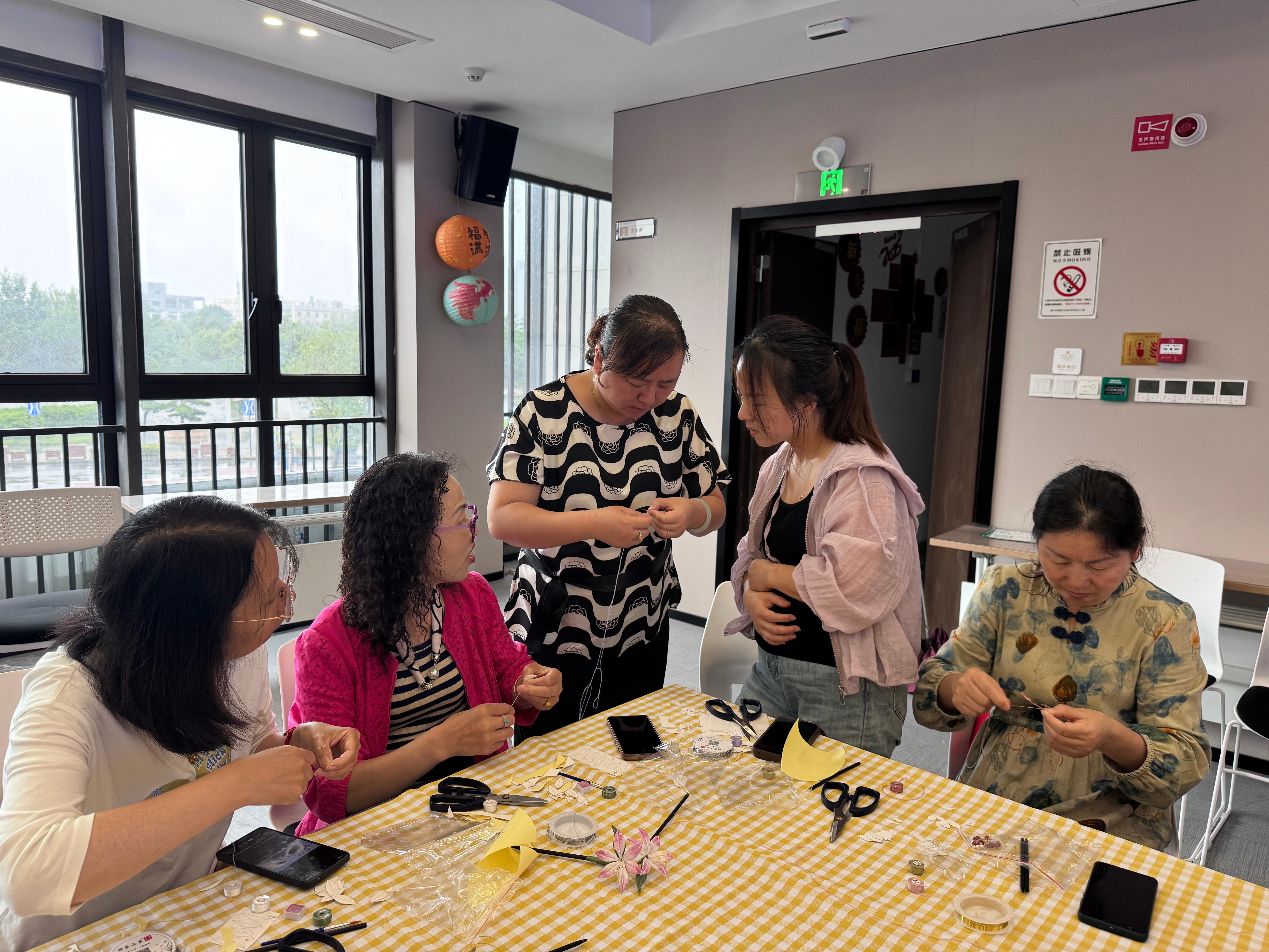 除了舞台上的展示,长纤塘社区更注重团队凝聚力的培育与文化内涵的深化。为此,社区专门为旗袍队成员策划了发簪制作、宋锦团扇制作、旗袍主题写真拍摄等系列文化体验活动。在近日举办的年终总结活动中,队员们佩戴亲手制作的缠花发簪,身着典雅旗袍,手执自制宋锦团扇,于专业镜头前定格下极具个人风格的优雅影像。这一系列活动,不仅增强了团队的艺术修养与凝聚力,更重要的是,它将传统文化从舞台上可“观”的表演艺术,转化为生活中可亲手触“制”、可沉浸体“感”、可珍藏拥“有”的日常生活美学,真正实现了“人的培育”与“文化的传承”相结合。