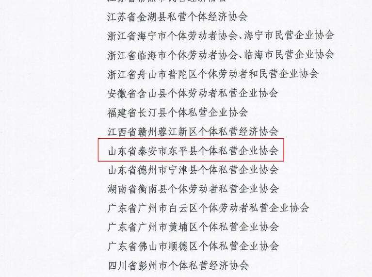 喜报!东平县个私协会“问情服务”、“个私协会系统调研”2项工作受到中国个体劳动者协会表彰!