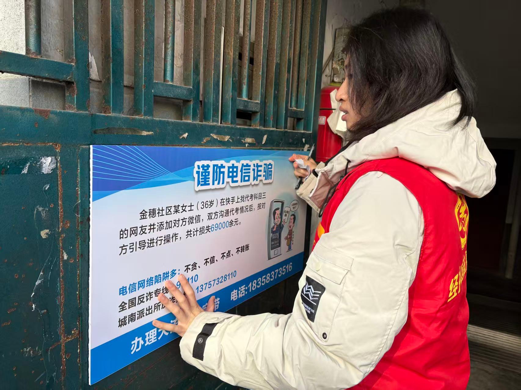 此次楼道反诈宣传升级是金穗社区构建“全民反诈”格局的重要举措。下一步,社区将持续动态更新反诈宣传内容,结合线上微信群推送、线下集中宣讲等多种形式,不断丰富宣传载体,让反诈意识融入居民日常生活,形成“人人识诈、人人防诈、人人反诈”的浓厚氛围,切实守护好辖区居民的财产安全,为建设平安和谐社区奠定坚实基础。(通讯员 杨琴)