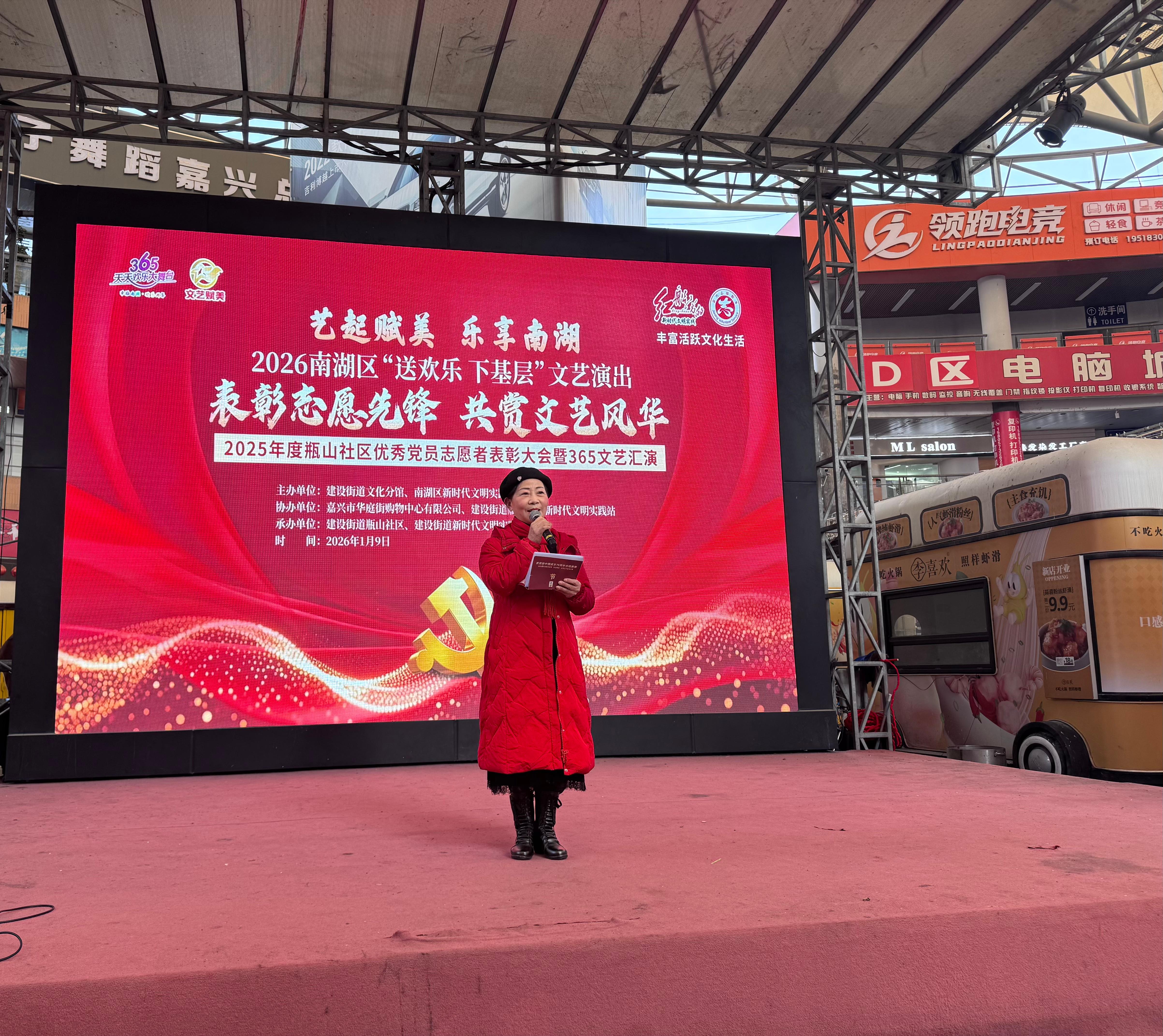 1月9日,嘉兴市南湖区建设街道瓶山社区成功举办了“表彰志愿先锋、共赏文艺风华——2025年度瓶山社区优秀党员志愿者表彰大会暨365文艺汇演”活动。活动旨在弘扬志愿服务精神,丰富居民文化生活,营造崇德向善、见贤思齐的社区氛围,吸引了众多社区居民积极参与。