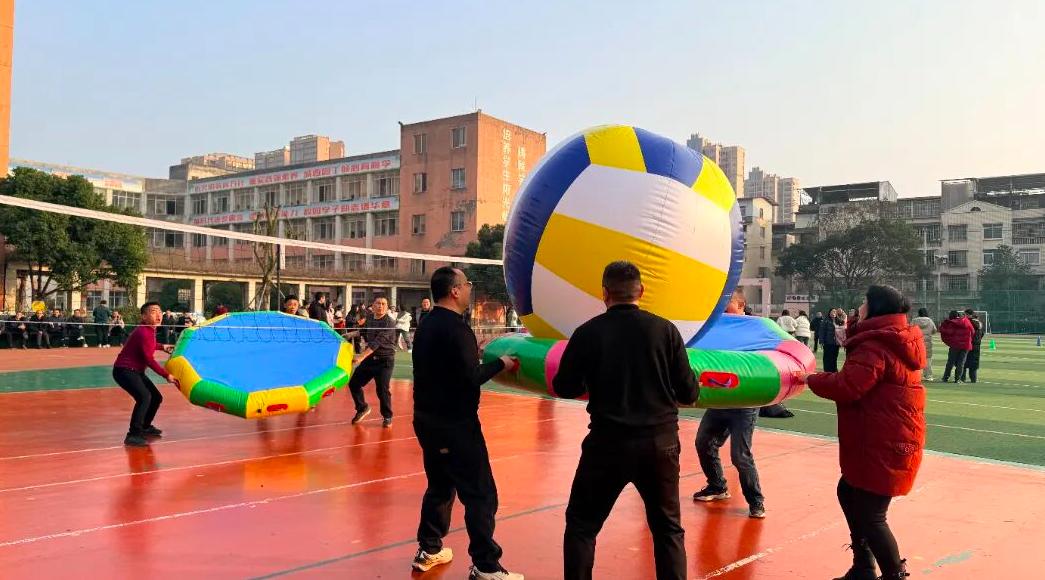 新教师环节结束后,全体教师参与的趣味项目正式开启!旋风跑、九宫格、气球接力、同舟共济、巨型气排球比赛五个项目依次进行,每个项目都兼具趣味性与协作性,让老师们在竞技中收获快乐,在协作中增进情谊。