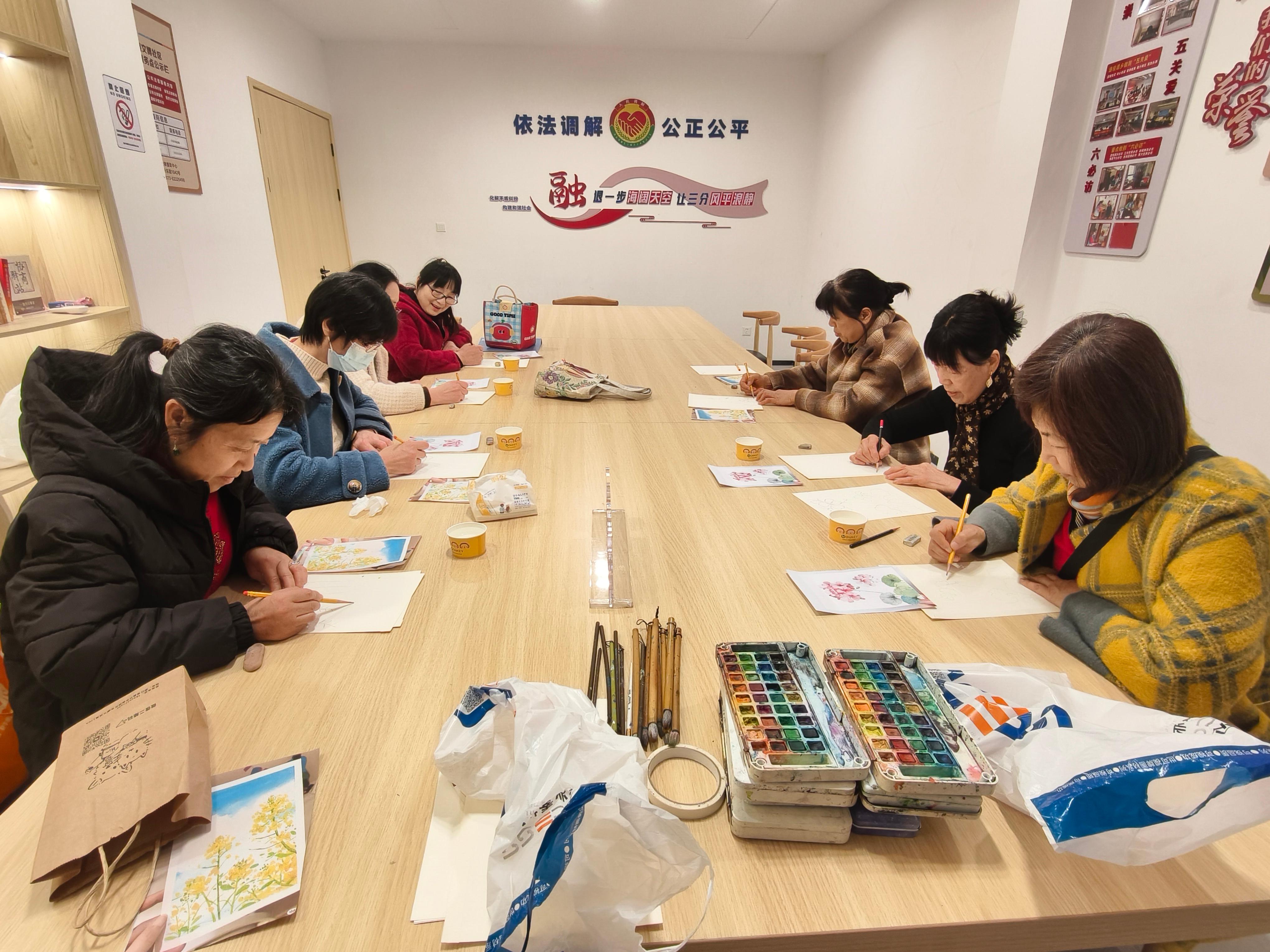 为丰富辖区居民精神文化生活,让艺术之美融入日常,嘉兴经开区城南街道文博社区联合辖区三匠美术培训机构开展“禾你学艺”成人水彩画公益培训活动,大家以笔为媒、以水为韵,在方寸画布间邂逅水彩艺术的独特魅力。