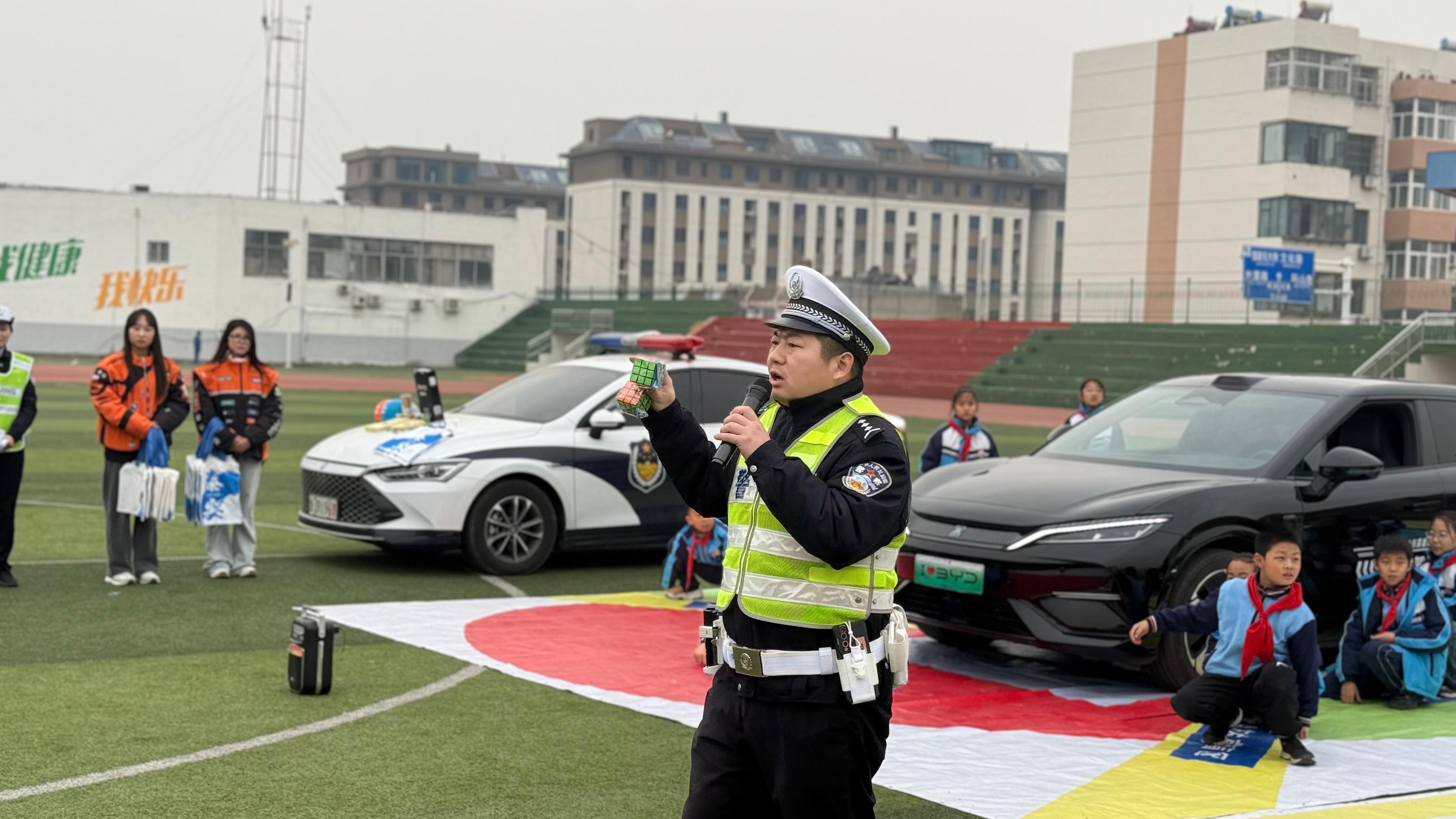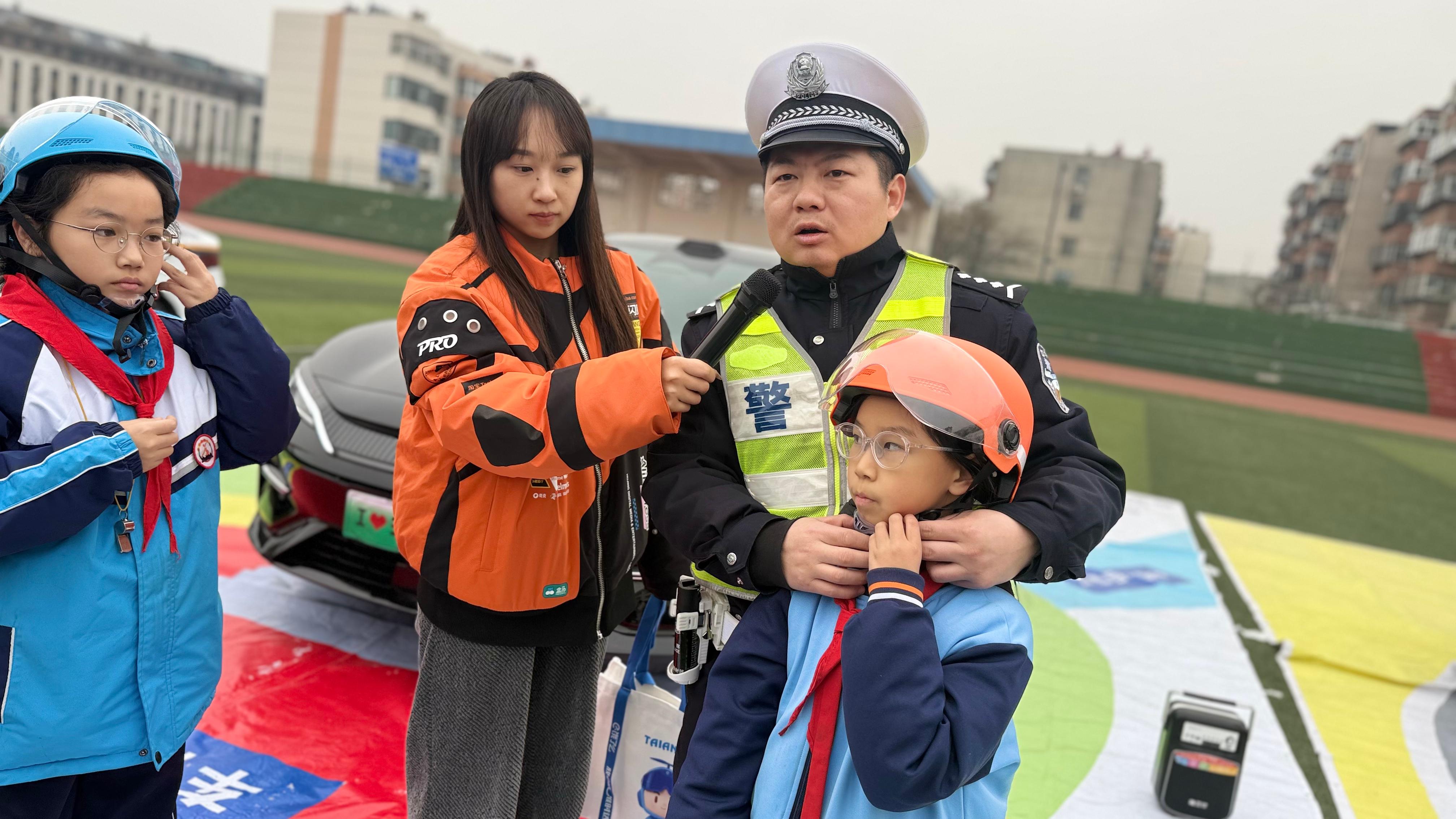 为强化记忆、检验成效,活动穿插了简短活泼的交通安全有奖问答。同学们踊跃举手,将车辆盲区、防范“开门杀”、正确佩戴头盔等知识一一答出。由警企共建泰安震德比亚迪、淘宝闪购提供的文具等作为奖品,进一步激发了孩子们的参与热情,现场气氛热烈活跃。