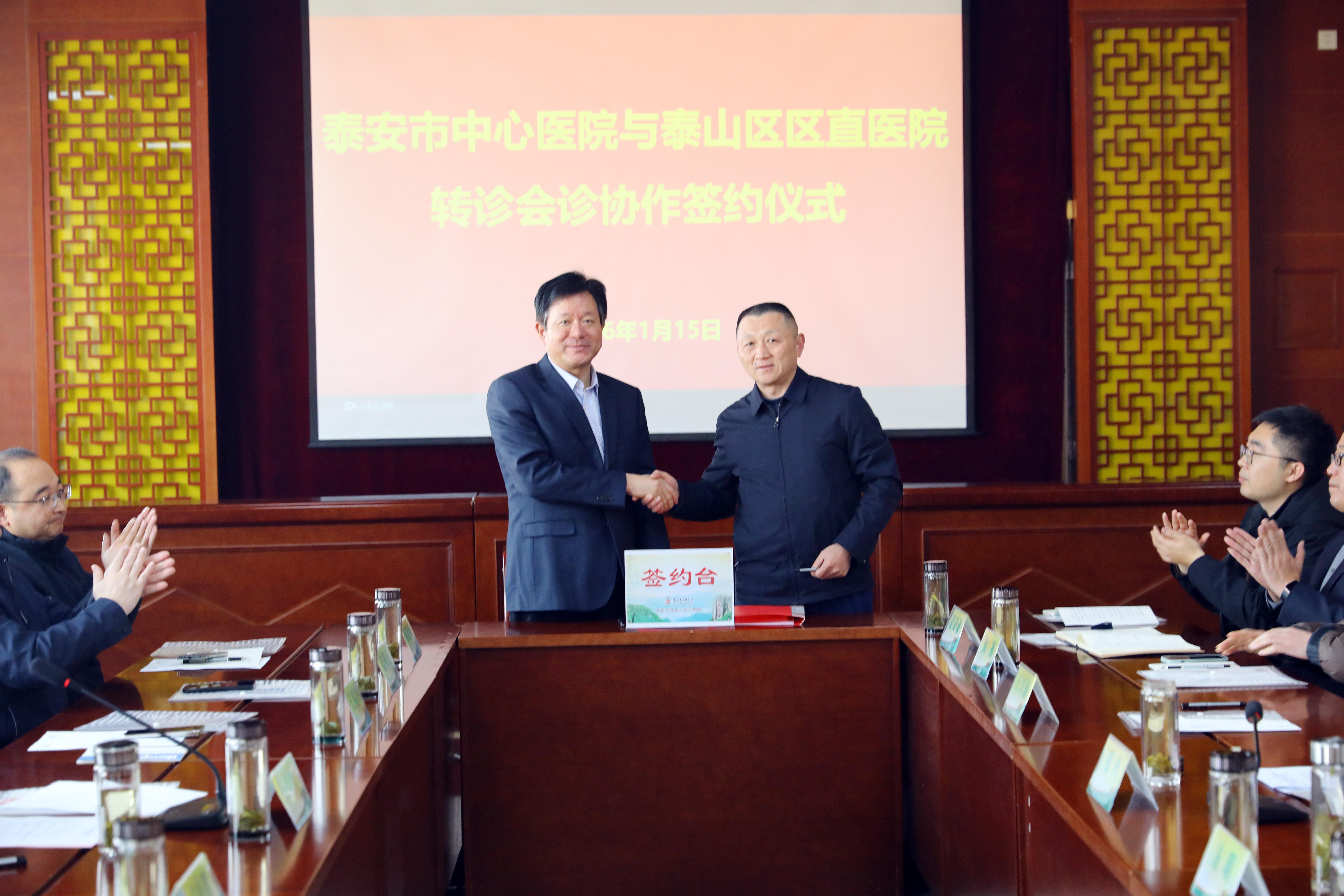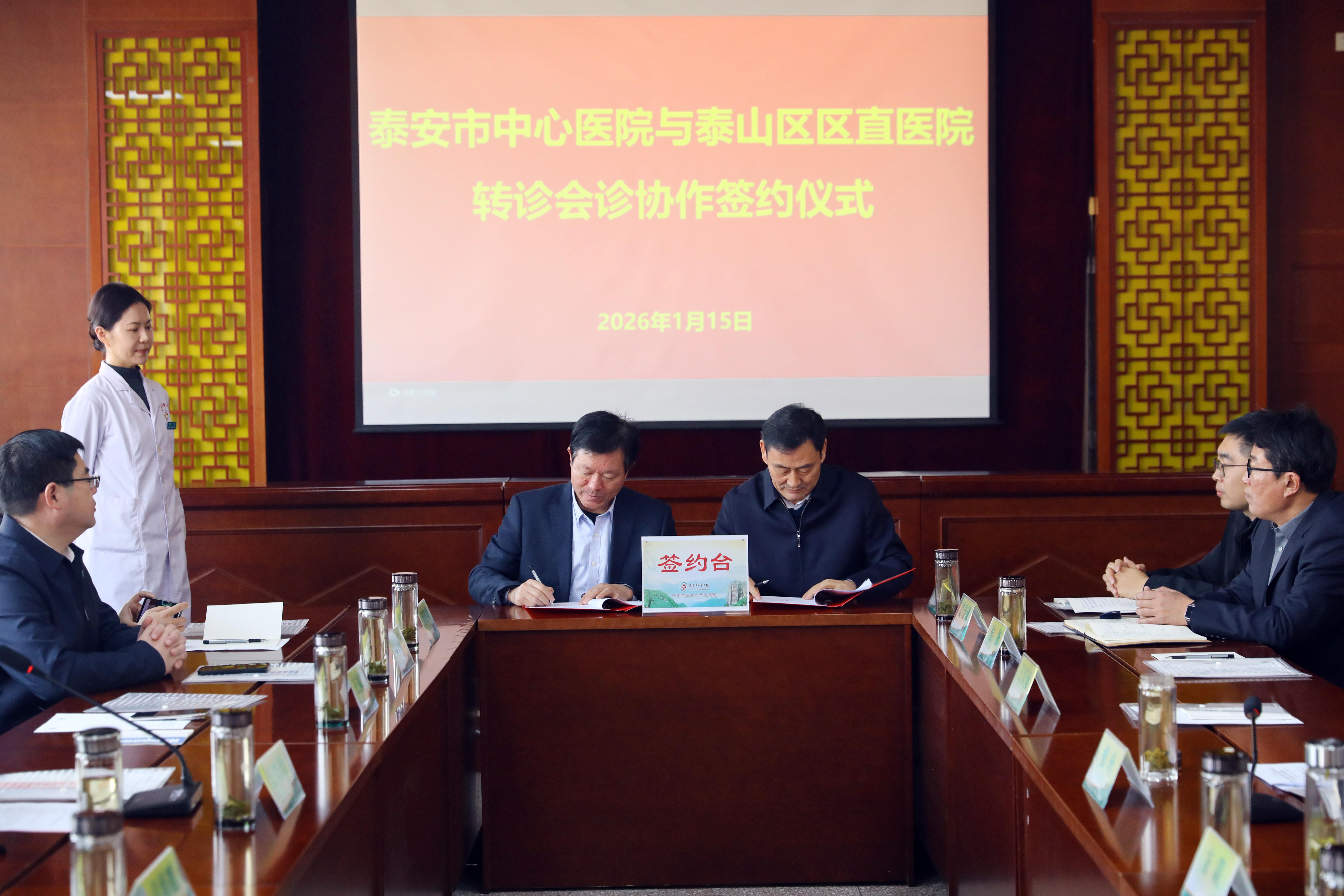 仪式现场,泰安市中心医院党委委员、副院长王国军代表医院,分别与泰安市中医二院、泰山区人民医院代表签署协作协议。