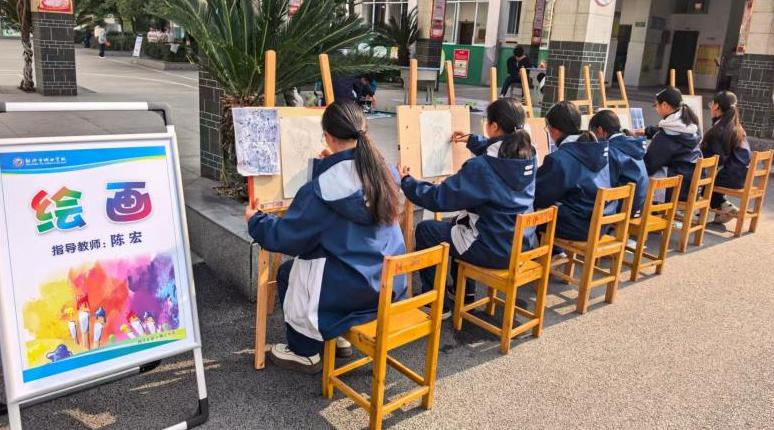 14时,活动在学校操场正式拉开帷幕。主持人热情洋溢地开场后,何校长发表致辞。她充分肯定了本学期课后服务工作取得的阶段性成果,强调课后服务是学校落实“五育并举”、促进学生全面发展的重要平台,既是对课堂教学的有效延伸,更是滋养学生个性特长的重要沃土。何校长鼓励同学们在展示中尽情绽放自我、在观摩中相互学习成长,以自信姿态展现课后时光的收获与蜕变。随后,随着何校长“射洪市城西学校2025年秋季课后服务展示活动正式开始”的宣布,初一、初二年级学生在班主任的有序组织下,分批进入各展示区域,开启了一场沉浸式的课程体验与成果品鉴之旅。