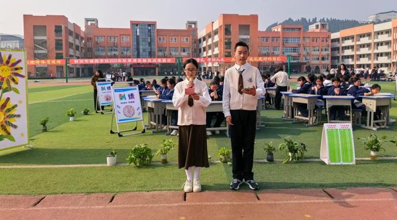 社区文化网(苏勤 谢涵)1月13日下午,射洪市城西学校以“五育融课后,芳华满校园”为主题的2025年秋季学期课后服务成果展示活动隆重举行。活动通过动态表演与静态展览相结合的多元形式,集中呈现了学校在体育、美育、科创、人文等领域的课后服务亮点,学校领导、初一初二全体师生共同参与观摩与评比,校园内处处洋溢着青春活力与成长喜悦。