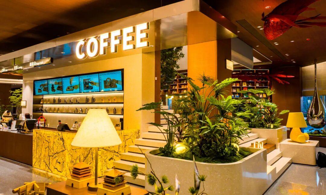 走进书房大门,随处能感受到“自然融入空间”带来的沉浸式体验。头顶上方,灵动的红鲤正悠然游弋,目光流转,室外的绿意已悄然漫入室内,蕨类舒展开叶片,枝条以自然生长的姿态延伸。再往里走去,则是喝茶和咖啡小憩的区域,“结合金漪湖周边景色,我们专门推出了青丘露、枫秋渡、云汀畔、苦思量等特饮,让咖啡和文化碰撞出更多的火花。”龙杨说。