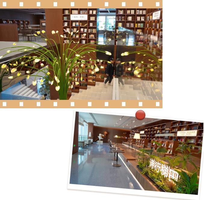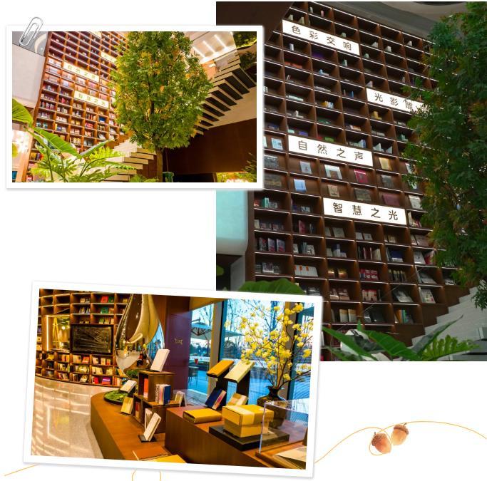 书架从地面一直延伸到天花板,摆满了各种书籍。当夕阳透过大落地窗洒进室内,整个阅读区被一层金色的光辉笼罩。无论是阅读还是拍照,都是一种享受。