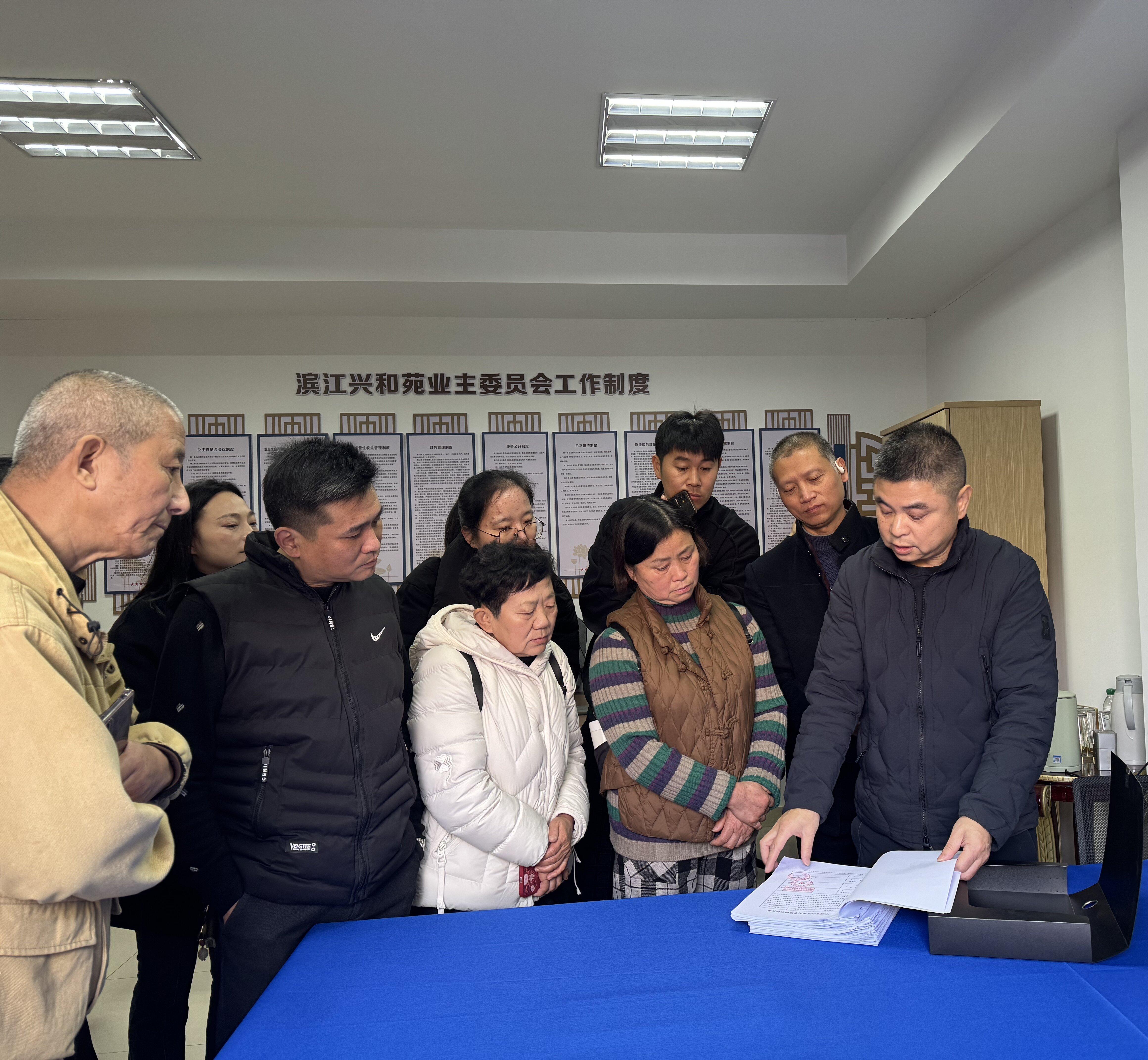 活动伊始,在兴和苑小区业委会丁主任的带领下,参与人员实地参观了业委会规范化办公场地、矛盾调解专区及台账资料展区。大家边走边看、边听边记,深入了解兴和苑小区在业委会组织建设、矛盾调解流程优化、案例归档管理等方面的先进做法,亲身感受专业化调解阵地在化解邻里纠纷、维系社区和谐中的重要作用。直观的展示、详实的讲解,让在场人员对规范化治理的实践路径有了更清晰的认知,也为“议‘南’事”品牌的规范化运行解锁了可借鉴的实践“南径”。