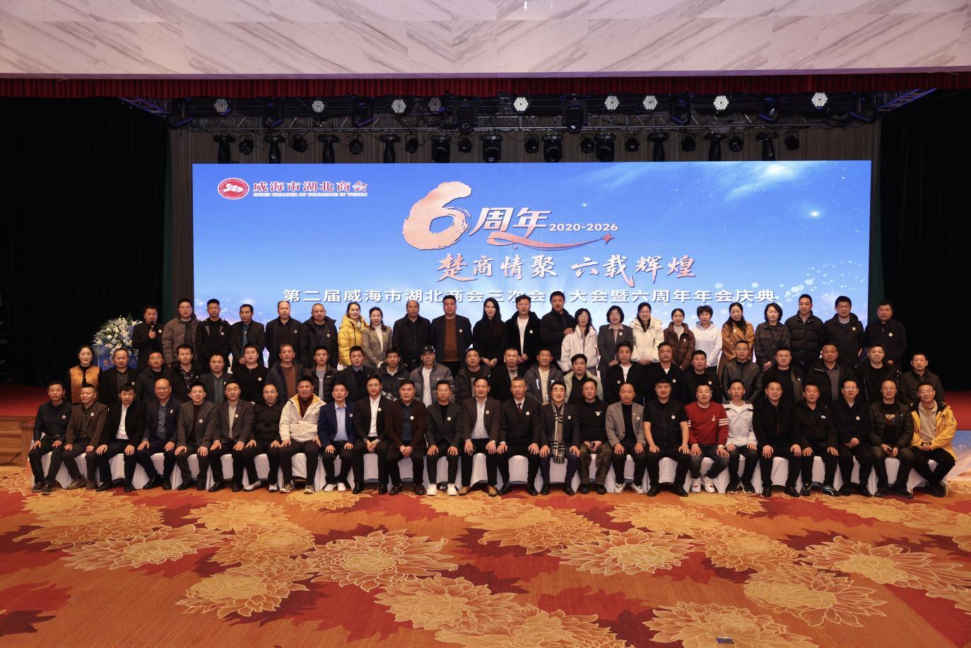 2026年1月16日下午,威海市湖北商会第二届第三次会员大会暨2025年度年会(六周年庆典)在威海隆重举行。威海市工商联领导、商会会员企业代表、兄弟商会嘉宾等齐聚一堂,共叙乡情、共商合作、共绘未来。活动分为会员大会和年度年会两大环节,全程氛围庄重而热烈,展现了商会团结进取、昂扬向上的精神风貌。