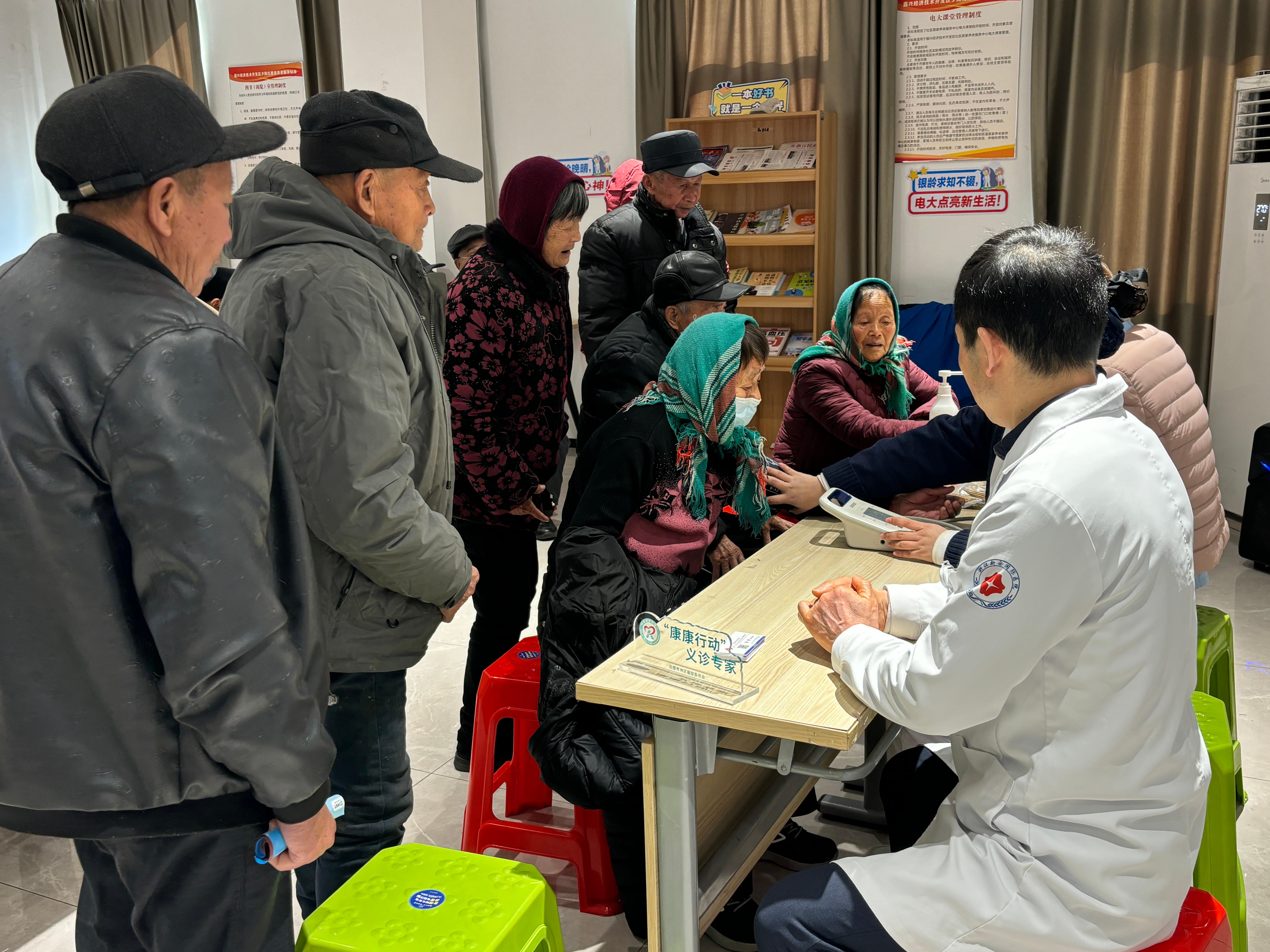 品粥之余,健康义诊环节同步开展,浙江新安国际医院的医生们现场为居民提供血压测量、血糖检测、健康咨询等服务,并针对居民提出的健康问题给予意见建议。