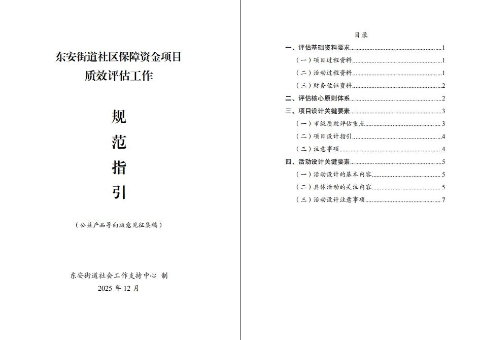 社治训练营第二期活动现场 构建“公益产品导向”全周期管理闭环 东安街道以本次活动为契机,推出《东安街道社区保障资金项目质效评估工作规范指引(公益产品导向版意见征集稿)》与《东安街道社区保障激励资金项目规划管理操作指引》,构建起了“公益产品导向”的全周期管理闭环,实现了区域领先的制度创新。