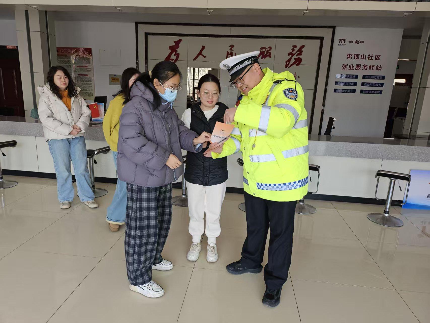 社区文化网(李涛报道 通讯员 玄莹莹)为切实提升社区居民交通安全防范能力和安全文明出行素养,营造出文明、和谐、安全的社区道路交通氛围,1月23日,泰安交警岱西大队组织宣传民辅警走进粥顶山社区,开展交通安全宣传教育活动。
