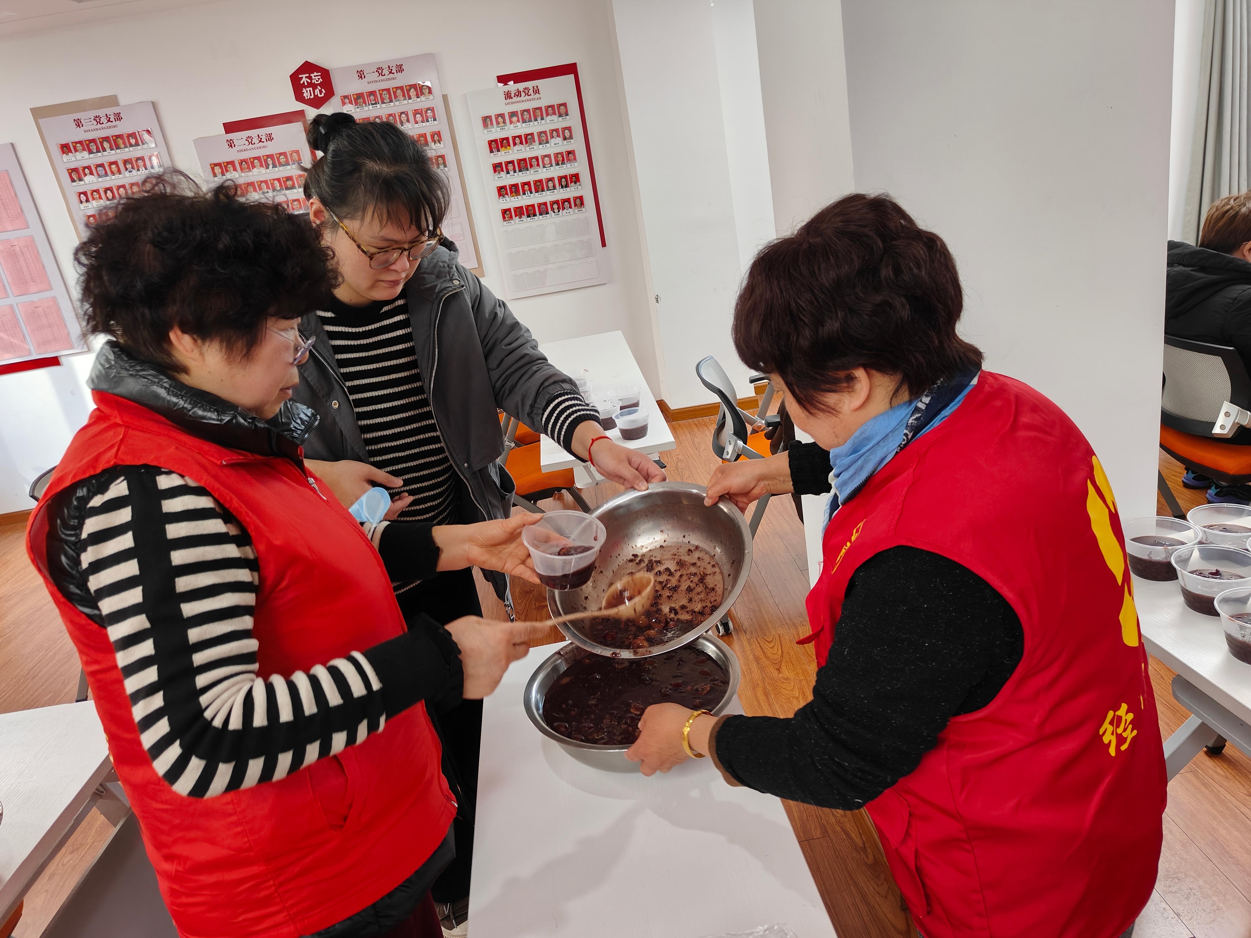 活动现场,居家养老工作人员精心熬制的腊八粥香气四溢,红枣、桂圆、莲子等食材在锅中翻滚,承载着满满的祝福。居民们围坐一堂,边品尝热气腾腾的腊八粥,边唠家常、话情谊,现场欢声笑语不断。“这粥喝着暖身,更暖心!”居民张阿姨笑着说。