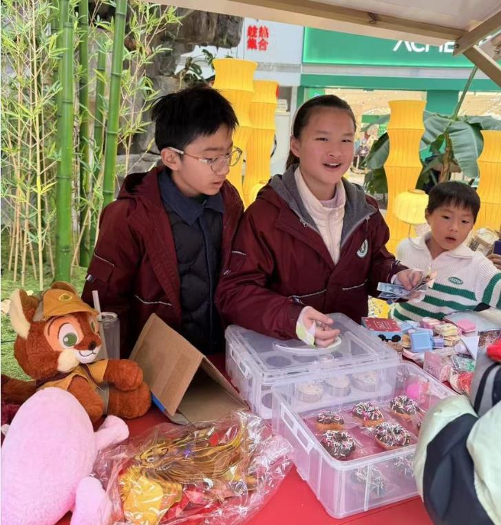 金华市环城小学五年级学子化身“公益小掌柜”,带着精心筹备的商品参与义卖,其中五(6)班以创意十足的摊位设计、分工明确的协作模式和真挚的公益热情,成为市集上一道亮眼的风景线。