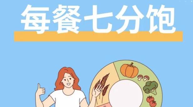用小碗盛饭先吃蔬菜,再吃蛋白质和主食。七分饱的标准是胃里不觉得空也没有胀满感,起身活动时身体轻快、无负担。