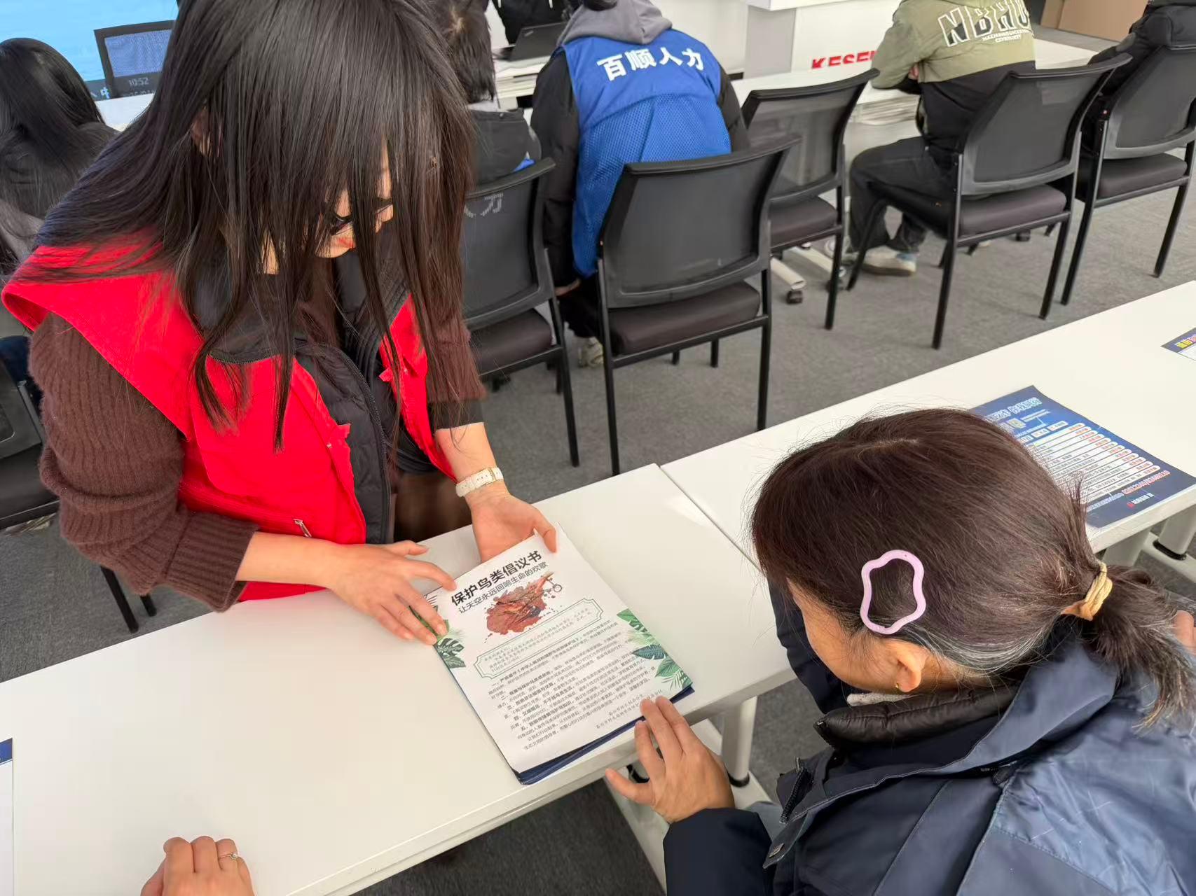 为推动生态保护理念向企业延伸,社区工作人员走进辖区3家企业,开展“保护鸟类・守护生态”主题宣传。活动中,通过案例剖析、法律解读、互动答疑等形式,结合本地常见鸟类习性,讲解鸟类生态价值、非法捕鸟法律后果及企业护鸟举措,并发放科普手册与倡议书,明确举报渠道,120 余名企业员工参与其中,护鸟爱鸟的生态共识深入人心。