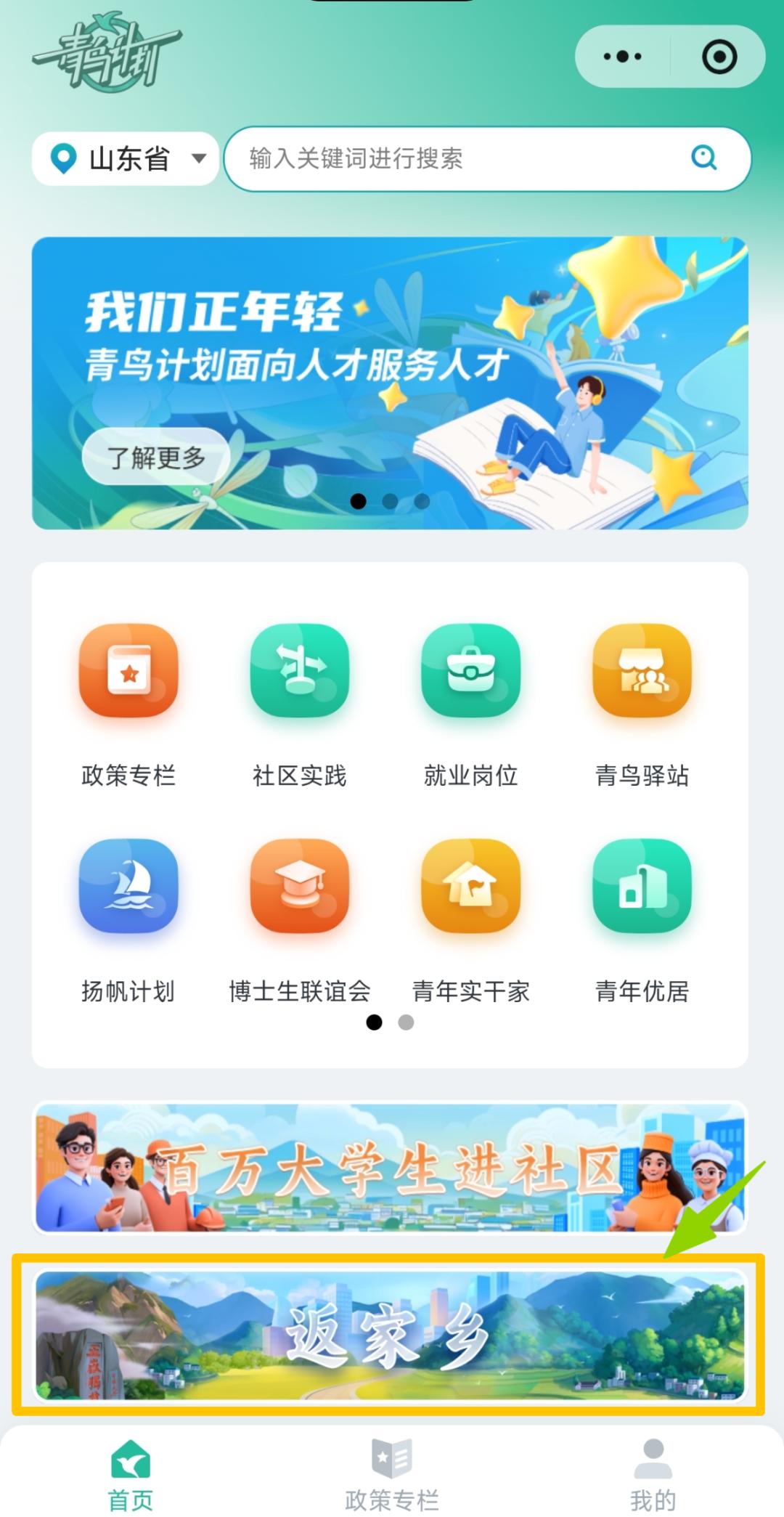 1.扫码进入“青鸟计划”小程序或直接微信搜索“青鸟计划”小程序。