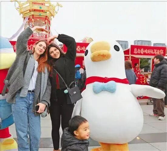 “我要和‘波波鹅’合影!”活动现场,两只穿梭在人群中的玩偶格外引人注目。它们造型可爱、形象软萌,吸引众多市民驻足拍照。