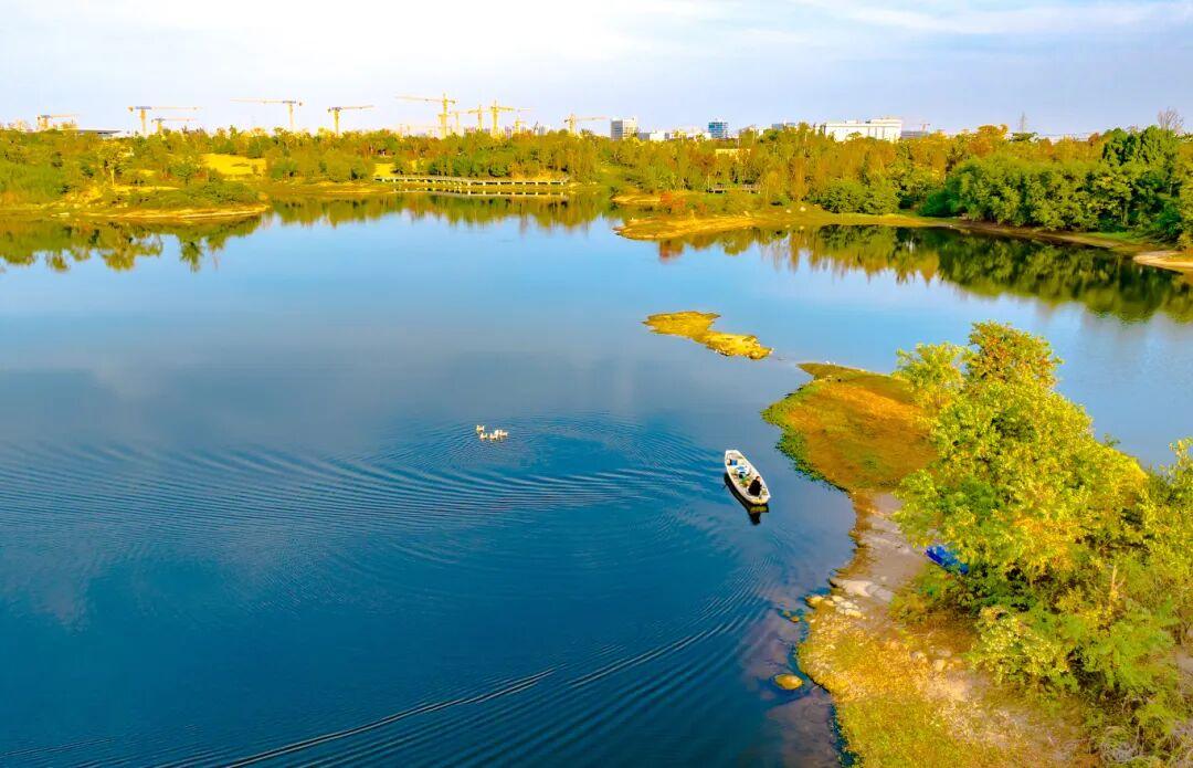 作为全区唯一一座人工库塘湿地公园,金满湖湿地面积63.7公顷,2025年成功入选省级重要湿地。近年来,通过全方位的提升改造,金满湖省级重要湿地不仅实现了生态功能的全面复苏,更成为景观优美、基础设施完备的生态空间。每年开春,郁金香、梨花、桃花竞相绽放,与亲水平台、游步小道上的游客相映成趣。当前,随着环金满湖未来新城建设的全速推进,生态价值在不断转化为发展的活力。