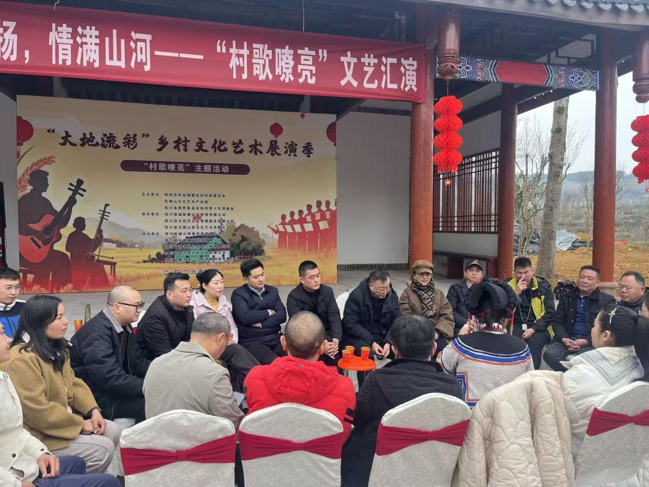 本网讯(王云河 报道)2026年1月31日,由崇州市怀远镇黎店村村民委员会、四川省教育基金会协同育人专项基金与无根山文化艺术产业园联合主办,由黎店村民、艺术家、全川返乡创业企业家代表、专家、领导等200余人共同参与。“大地流彩”乡村文化艺术展演季—“村歌嘹亮”主题活动在无根山文化艺术产业园文化广场顺利举行。