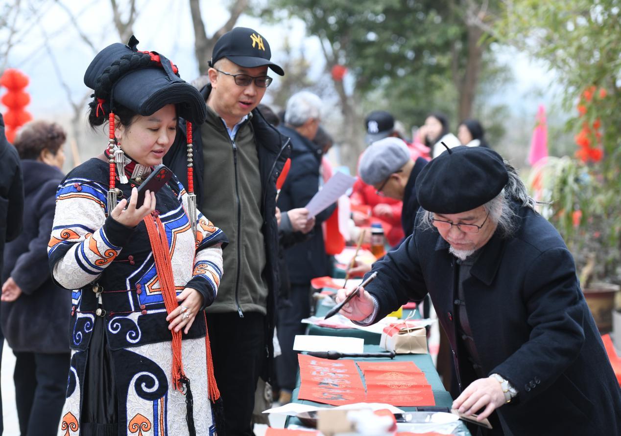 活动伊始,主舞台侧方的政策宣传、项目推介及非遗展示区便已人气火爆,无根山房产业园书法家现场开展“迎春送福”写春联、“笔绘丰年”画年画等互动,画出乡村振兴的巨变,农民幸福生活笑脸,让嘉宾在感受产业活力的同时,也提前触摸到了有温度的传统文化烟火气。