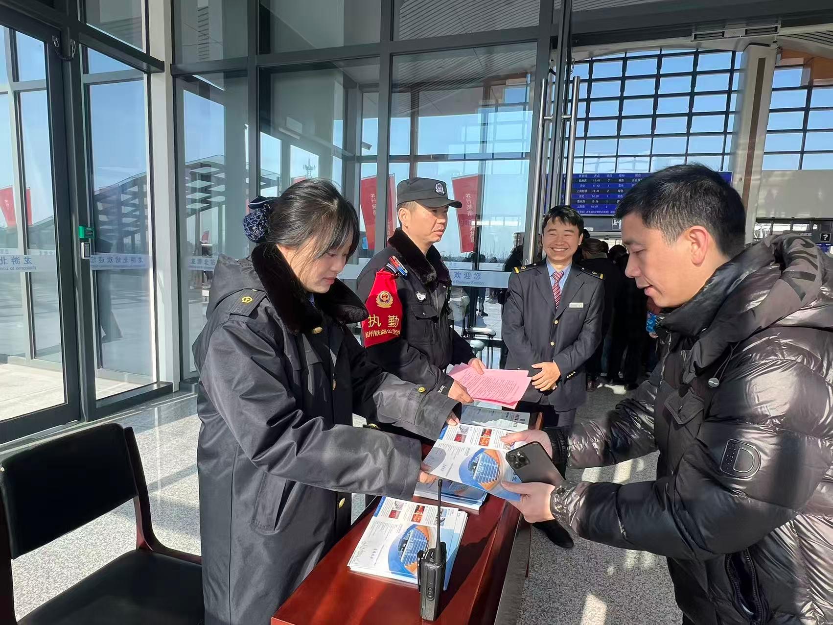 因龙游北站是新站,旅客对乘车流程不熟悉的实际,在进站口设置便民服务点,为旅客提供通行指引、失物找寻、法制宣传等服务;为老弱病残孕等重点旅客开通绿色通道,提供全程帮扶,切实解决特殊旅客出行难题,让春运旅途更有温度。