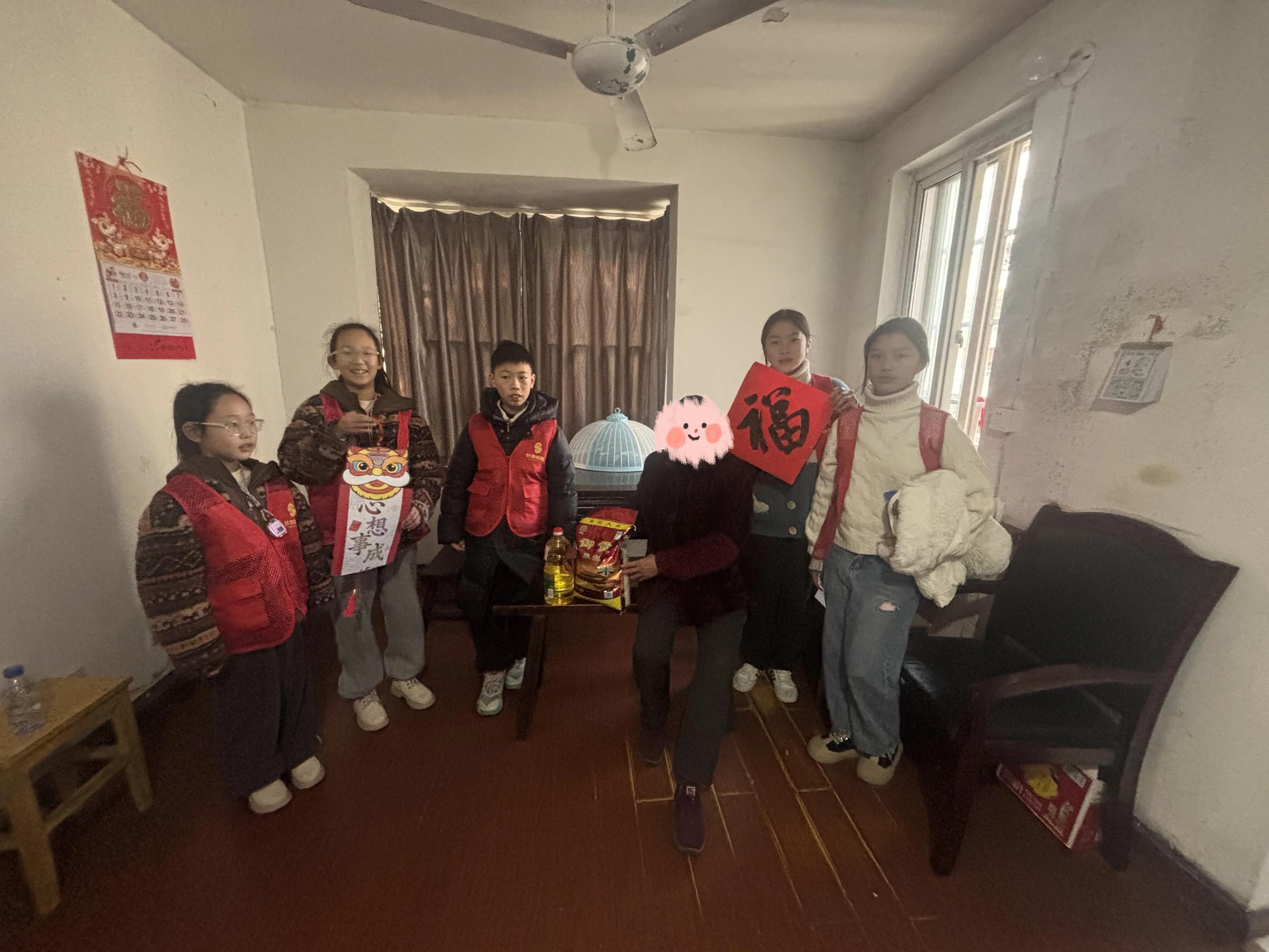 2月4日,嘉兴经开区长水街道长水社区组织了一场温馨的新春慰问行动。来自辖区“红领巾”志愿服务队的12名小志愿者,带着亲手制作的醒狮祈福卡、手写春联福字,以及米、油生活物资,陆续走进社区6位独居老人家中,传递新春的祝福。