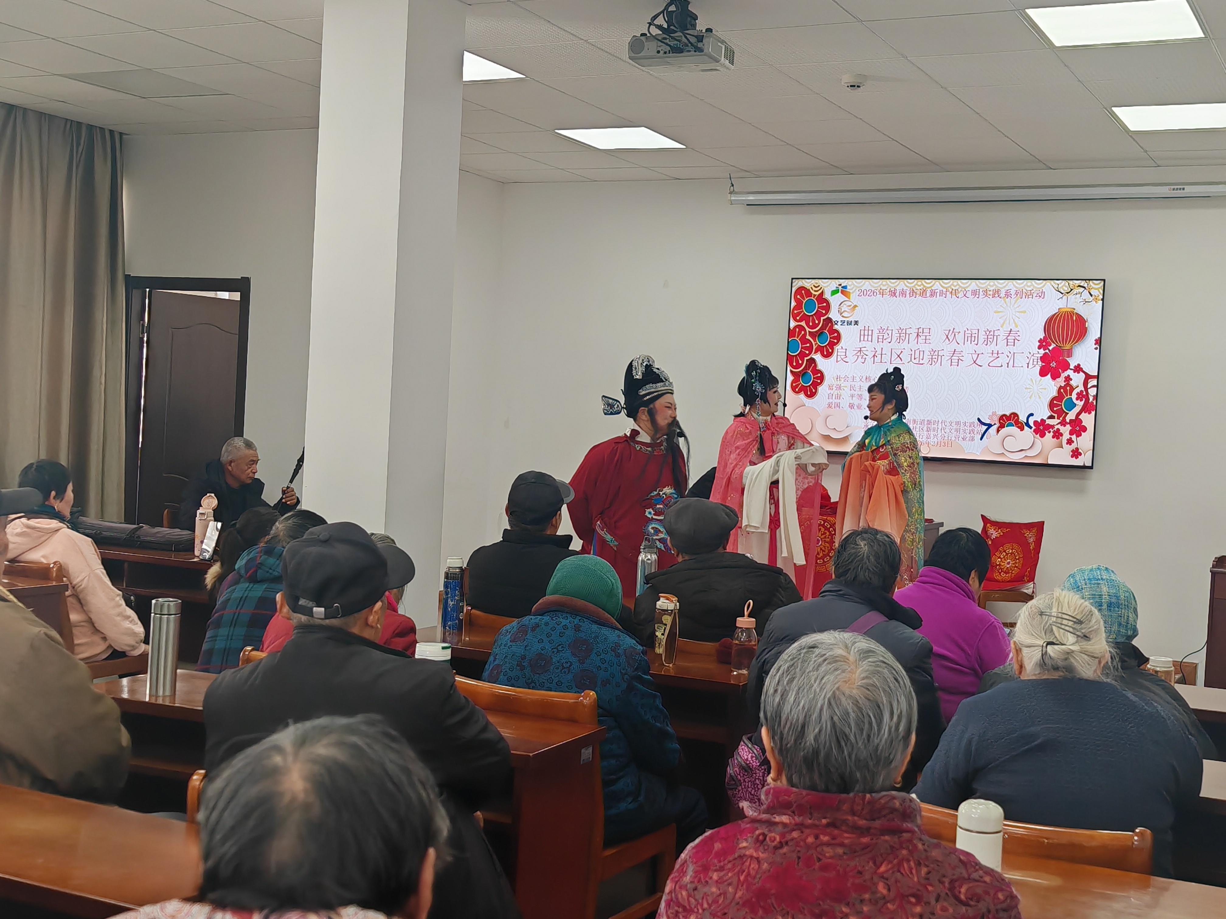 近日,嘉兴经开区城南街道良秀社区新时代文明实践站举办了“曲韵新程 欢闹新春—我们的新春文化汇演”,邀请了辖区内的老年朋友欢聚一堂,以歌传情、以舞贺春、以戏暖心,共赴一场热闹祥和的新春盛宴。