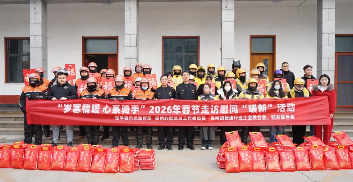 社区文化网(李涛 报道 通讯员 周文广)为切实关怀网约配送员群体,传递党和政府的温暖,2月3日,东平县市场监管局、县网约配送行业党委组织开展2026年春节慰问外卖骑手活动,向坚守在配送一线的骑手们致以节日的问候和美好的祝福。东平县市场监管局分管领导,相关科室负责人,美团、淘宝闪购骑手等共计50人参加活动。