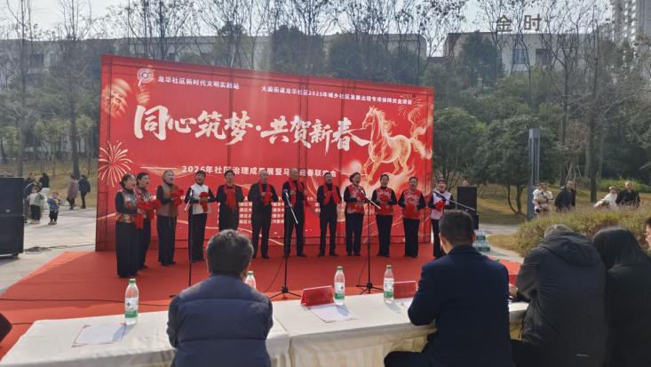 2026年2月6日下午2时,为系统总结2025年社区治理成果,营造喜庆祥和的节日氛围,由大面街道龙华社区居民委员会指导,龙泉驿区众益社会工作服务中心发挥平台作用,携手微光社工、共美社工、小桔灯社工、金川社工在龙华社区陡沟河公园开展“同心筑梦·共贺新春暨2026年社区治理成果展暨马年迎春联欢会活动,吸引了300余名居民热情参与。