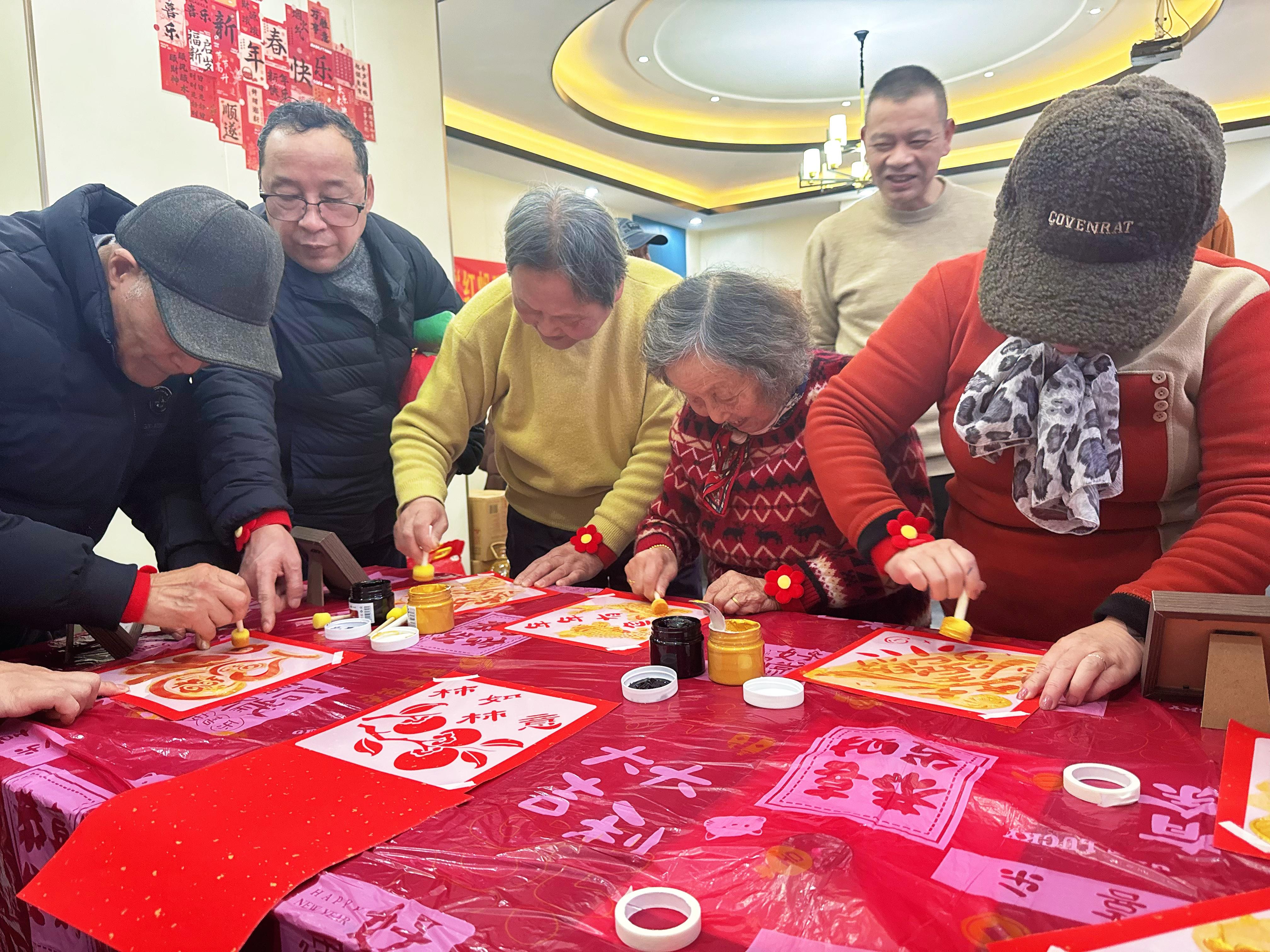 接着新春拓印环节温情开启,在志愿者的耐心指导下,老人们手持拓印材料轻压慢印。福字映红、骏马呈祥的图案缓缓成型,大家纷纷举起亲手拓印的作品细细端详,相互展示、彼此分享这份专属的手工成果,整场活动也在众人的合影留念中温馨落幕。