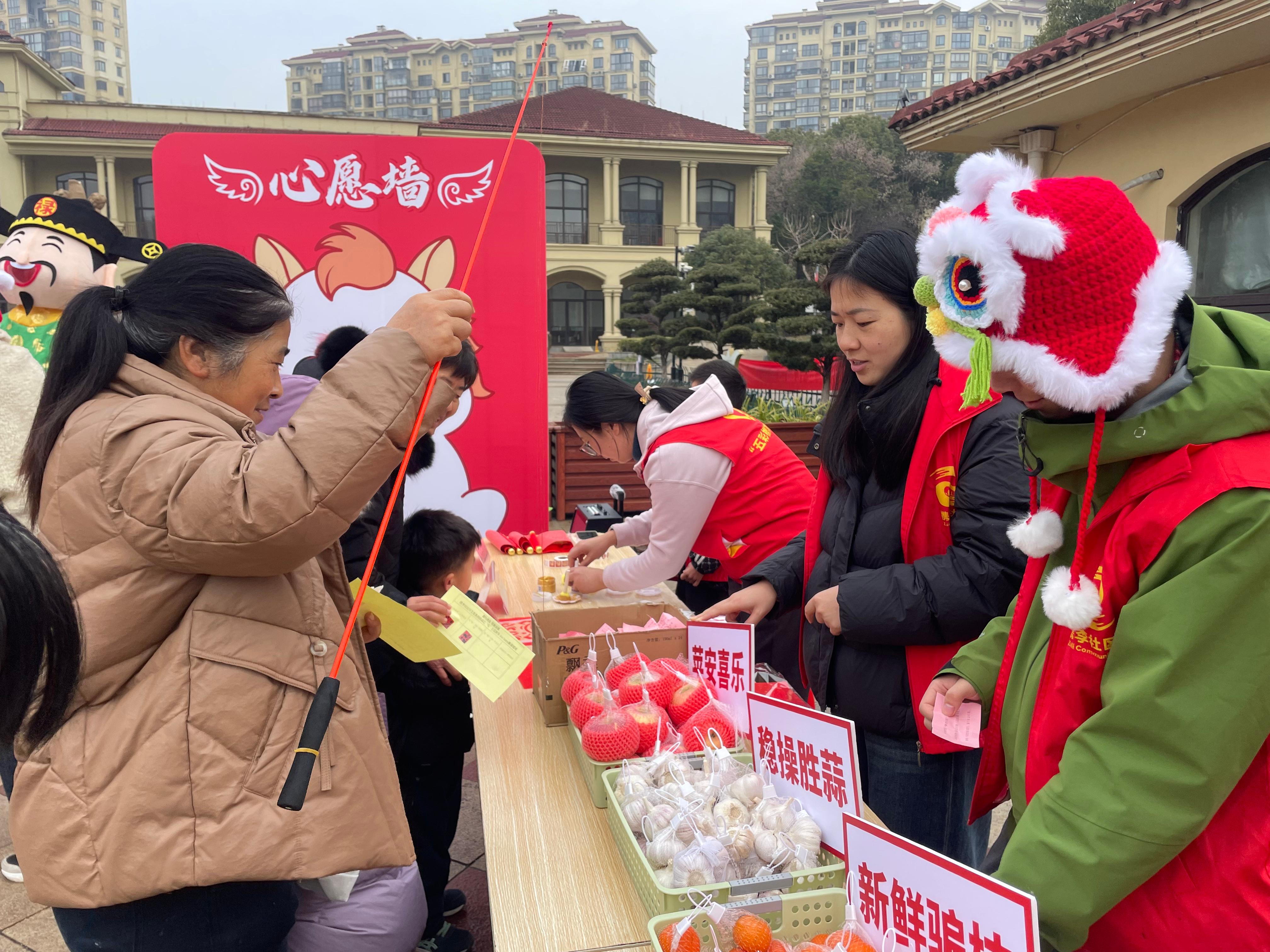 人气最旺的当属“安‘钱’马厚·平安问答”区域。活动将消防安全、垃圾分类、防诈知识融入趣味“钓‘财’护袋”游戏,居民手持绑着软磁铁的小钓竿,全神贯注“钓”起池中贴着创意标签的“防骗蔬果”——寓意“过关斩姜”的老姜、警示“新鲜骗桔”的桔子、提醒“苹安是福”的苹果、象征“稳操胜蒜”的大蒜。每钓起一个,工作人员便递上知识答题卡,答对即可将蔬果带回家。“这个好!一边玩一边学,年底了是要捂紧钱袋子!”李阿姨笑着说道。在寓教于乐中,居民轻松树立安全意识,为年末平安加了一道“安心锁”。