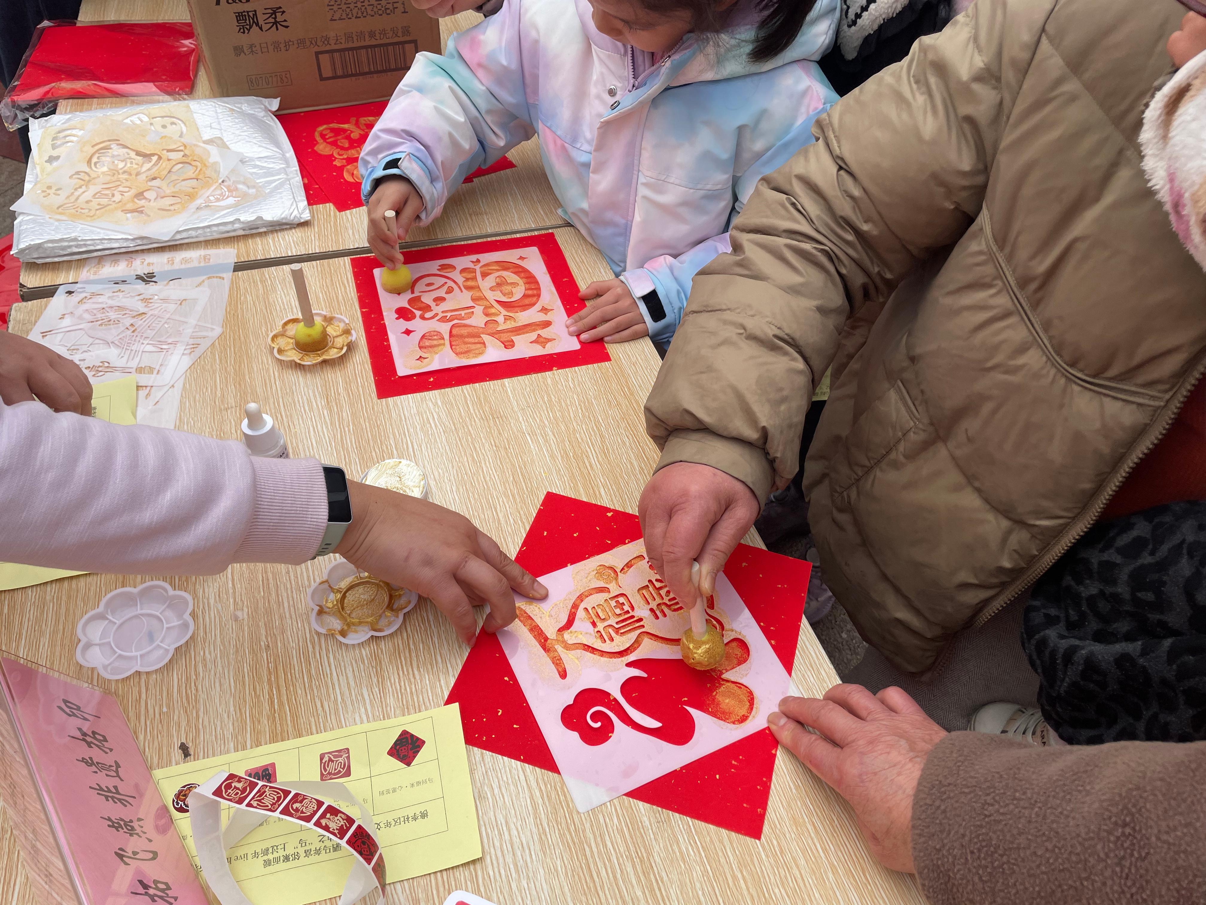 “妈妈,我要玩拓印,涂完这个带回家贴家里的门上!”在“马‘拓’飞燕·非遗拓印”摊位前,孩子们在家长的帮助下,用稚嫩的小手握住海绵棒,亲手体验拓印的每一个步骤。当清晰的“福”字与“马”字跃然纸上,现场洋溢起成就感的欢笑。