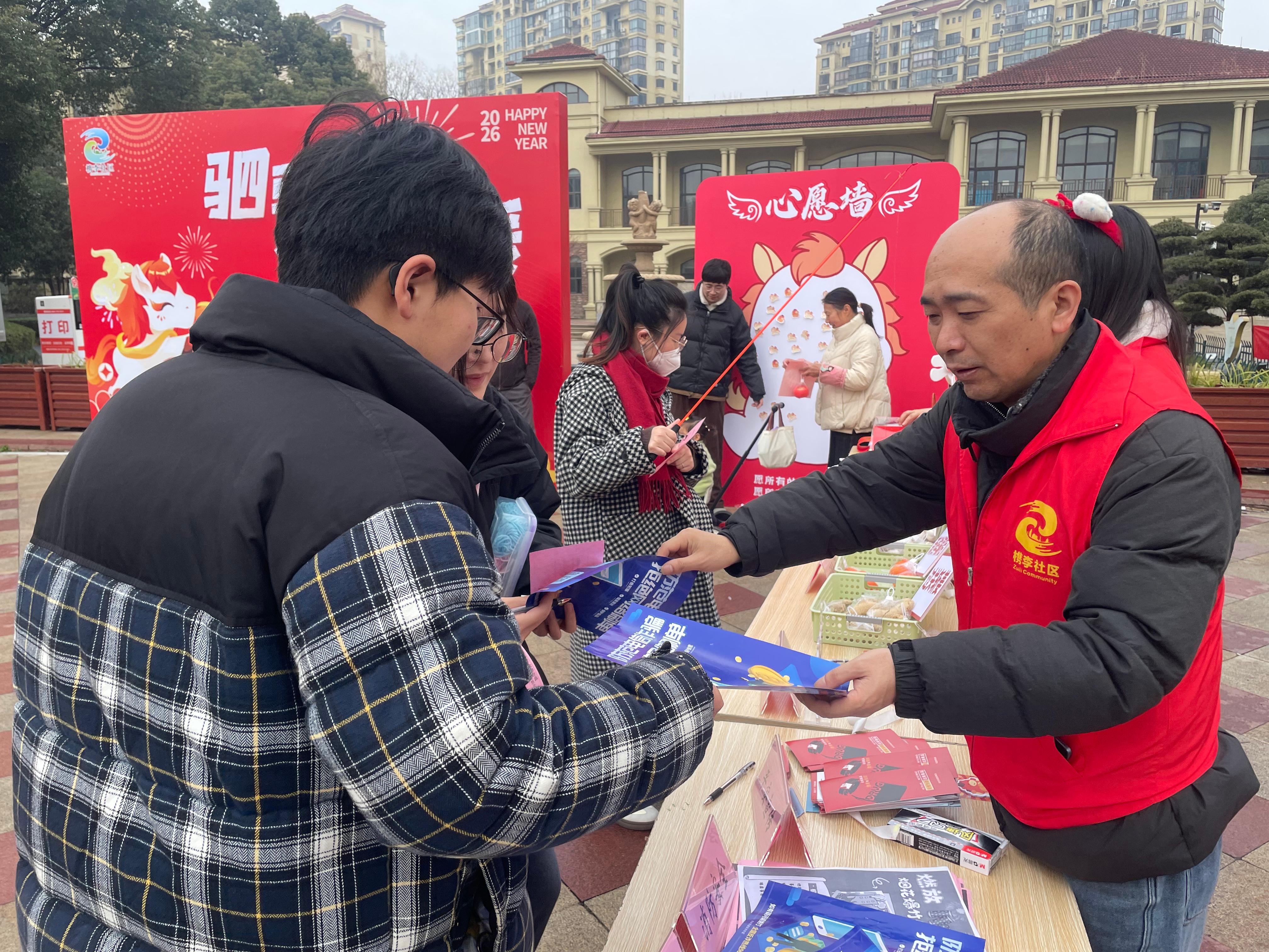 从篮球赛场下来的经开区浙BA队员张磊,本职是嘉兴禾城农商银行职员,如今从球场走向社区广场讲台,将金融专业知识转化为通俗易懂的“防骗指南”,以案说法教大家如何守住“钱袋子”;一旁的金铂利口腔义诊台前,医护人员正耐心为居民讲解护齿知识,并将“冬日益齿三件套”送给检查的居民。广场便民服务区内,从金融安全到健康守护,专业力量下沉社区,多元资源的汇聚让服务既有专业精度,更有邻里温度,真正把暖心关怀送到家门口。