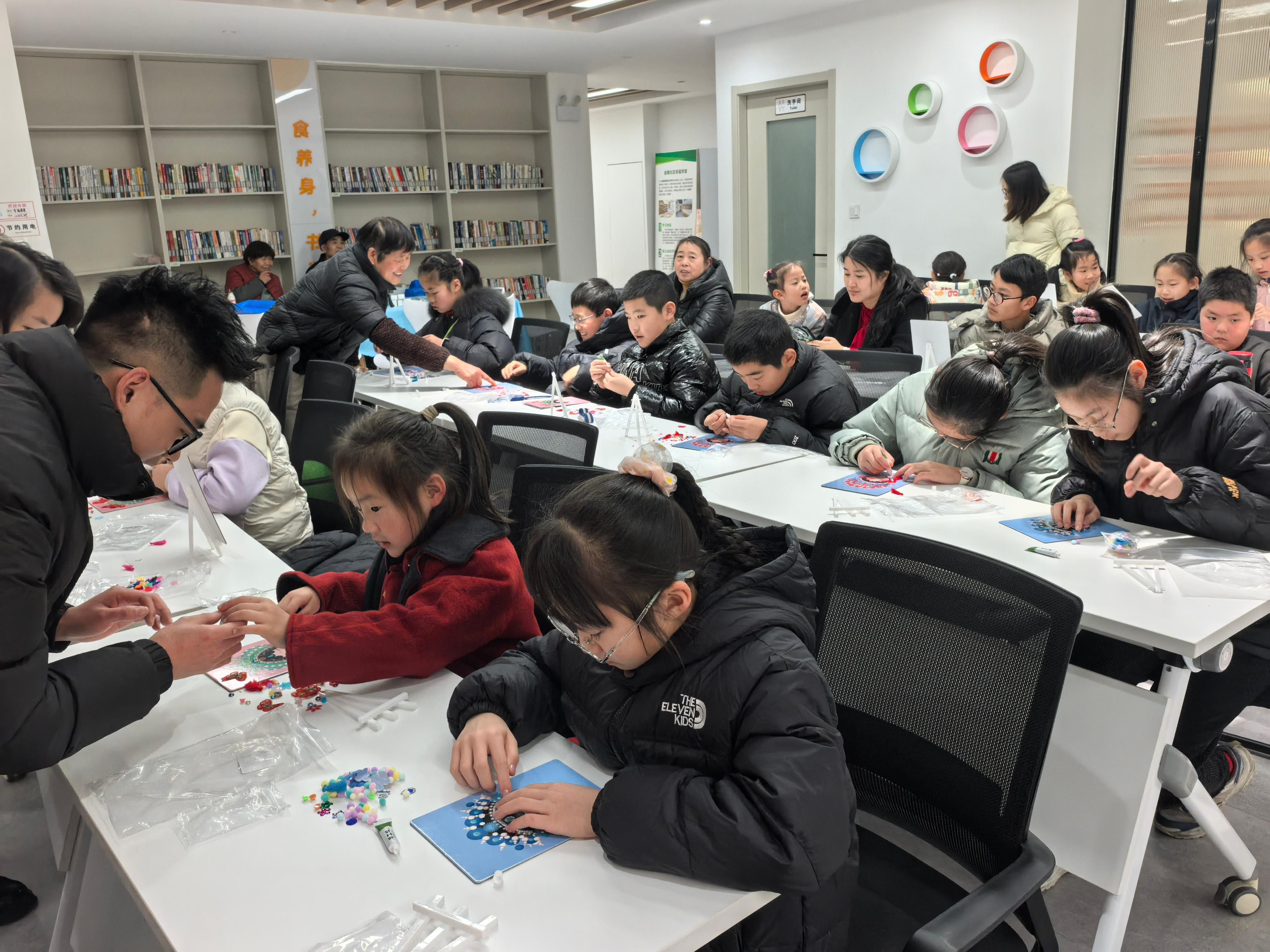 手工创作环节氛围热烈,亲子家庭默契配合、相互交流。大家小心翼翼地将绒花点缀在头饰上,用流苏装饰耳畔,晶莹的水晶则为脸谱增添了灵动质感。不少家庭特意选择白、浅蓝等素雅色调,让每一件作品都成为传统文化与民族团结的鲜活表达。