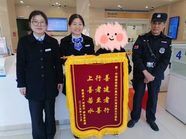 近日,建行嘉兴南溪路支行迎来了一幕温馨感人的场景——一位曾在此得到暖心救助的阿姨,在伤愈后的第21天,携家人一同带着一面鲜艳的锦旗重返网点,向网点工作人员表达深深的感激之情。锦旗上“善建者行,行者至善,上善若水”的烫金大字熠熠生辉,不仅是对银行工作人员善举的肯定,更是对银行服务精神的赞誉。