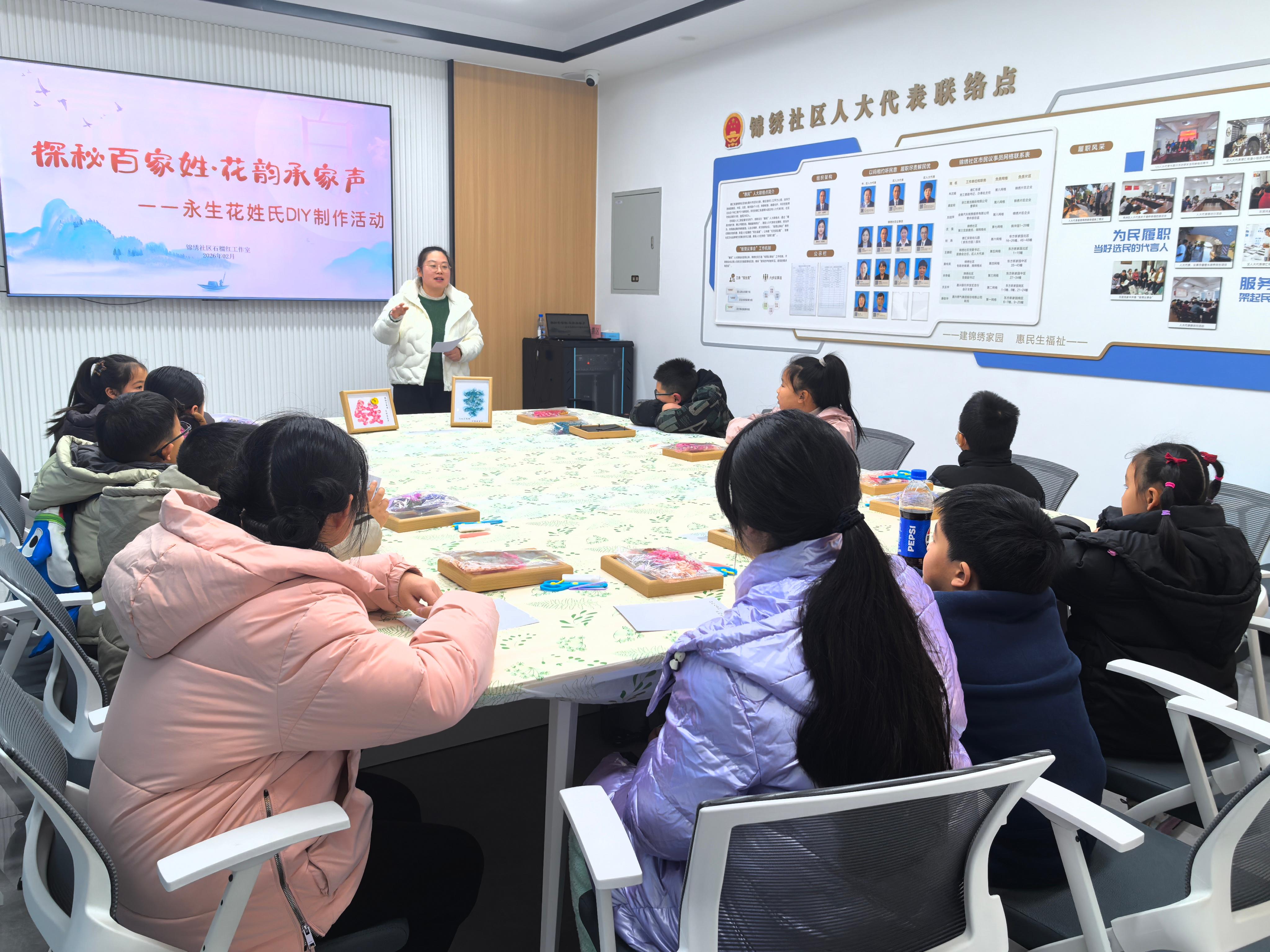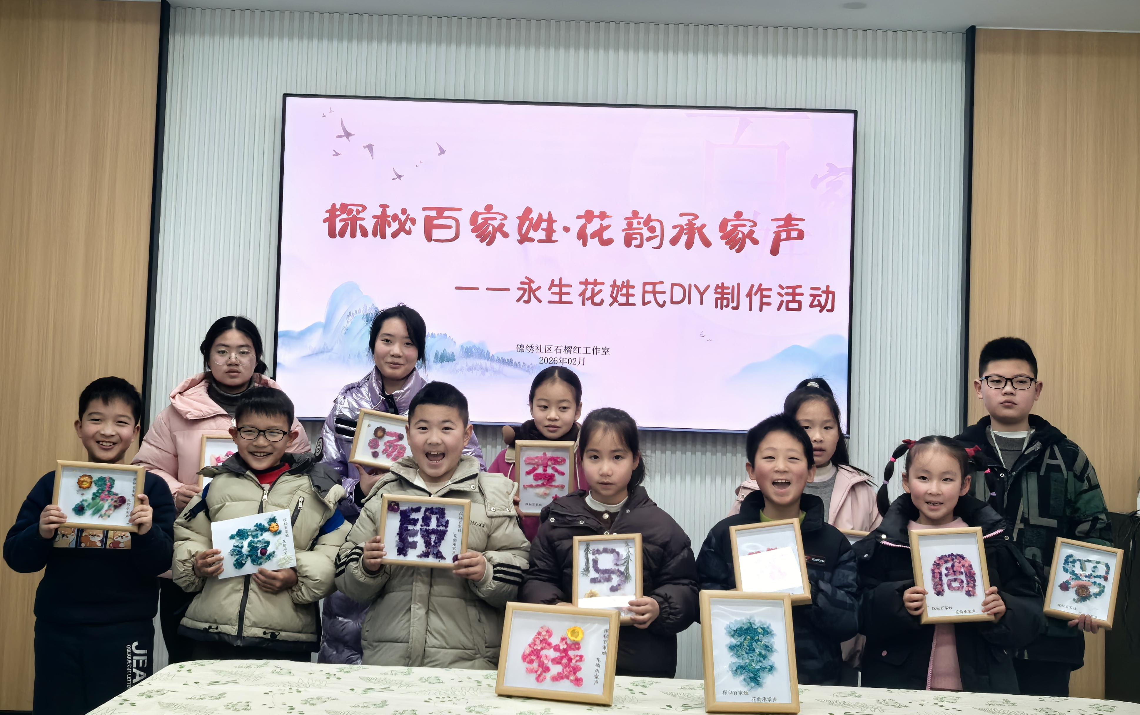为深入传承中华优秀传统文化,厚植社区青少年的文化认同与民族自豪感,近日,嘉兴经开区塘汇街道锦绣社区石榴红工作室组织开展了“探秘百家姓 花韵承家声”主题活动。活动以诵读、讲解、观影、手作等多元形式,为孩子们开启了一场沉浸式的姓氏文化探索之旅。