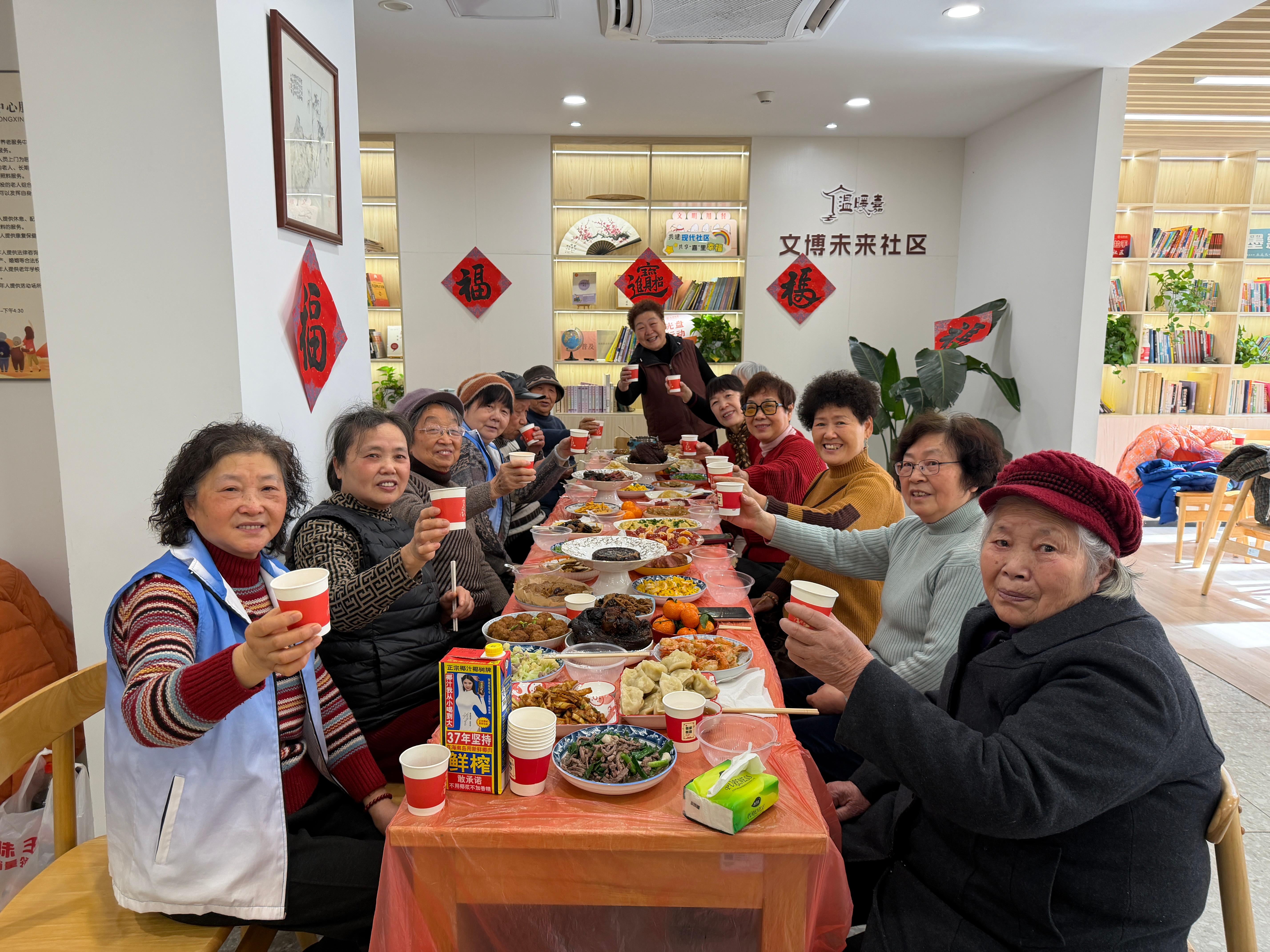 活动中,居民朋友们在喜庆布置中共聚一堂,从暖意融融的签到问候,到围桌共享寓意吉祥的年夜饭菜品,大家边品尝边畅谈,分享各自的春节记忆与邻里故事。席间,老人们从“熟悉的陌生人”变为互道祝福的“社区家人”。有不少独居长者表示:“这顿饭吃的不只是味道,更是陪伴与温暖。”活动在合影与笑声中落下帷幕,但邻里之间的情感联结却由此悄然生根,真正诠释了“邻里一家亲”的温暖内涵。