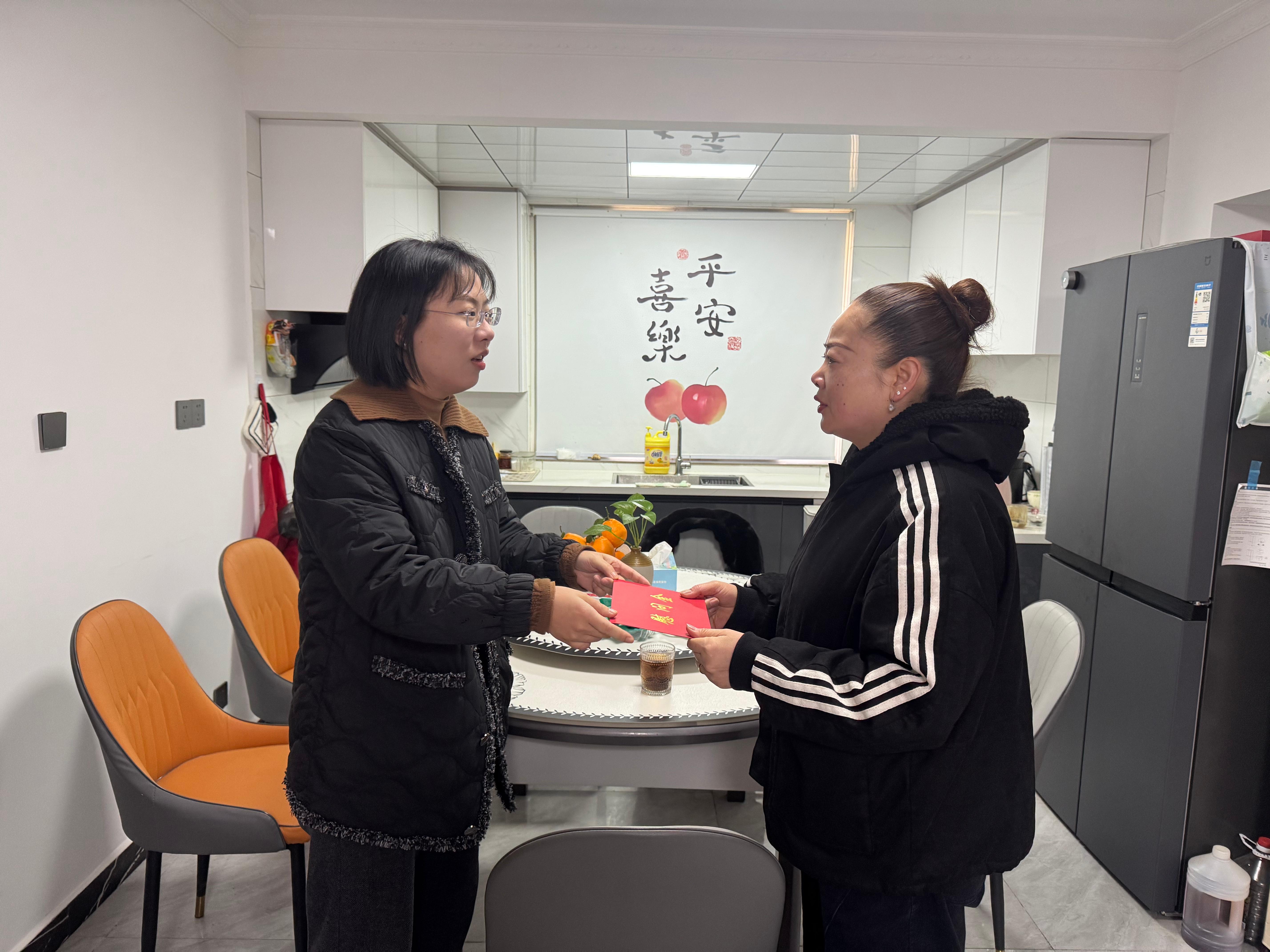 慰问的脚步也走进了现役军人家庭。当挂历送到军属手中,工作人员与他们亲切交流,详细了解军人在部队的近况与家中生活点滴,由衷感谢他们作为坚强后盾对国防事业的默默支持与无私奉献,并请军属转达社区对远方子弟兵的节日问候与敬意。