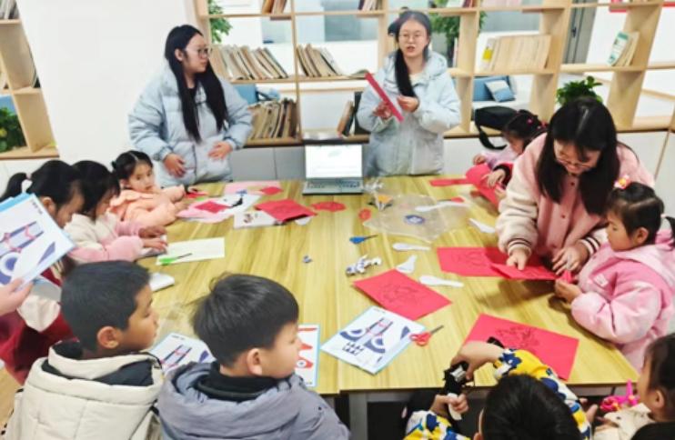 非遗传承添乐趣,年俗浸润迎新春。“蓝脸的窦尔敦盗御马,红脸的关公战长沙……”熟悉的旋律在活动现场响起,工作人员围绕脸谱的文化寓意、色彩内涵、绘制技巧,为孩子们进行细致讲解,让孩子们近距离感受非遗文化的独特魅力。讲解结束后,孩子们早已按捺不住创作热情,纷纷拿起画笔大胆构思、尽情创作:有的严谨复刻传统纹样,致敬非遗经典;有的大胆融入现代元素,设计出“太空关公”“卡通张飞”等创意作品,让古老非遗焕发童真活力。笔尖流转间,色彩碰撞出奇妙火花,孩子们在动手实践中触摸非遗温度,在个性表达中解读文化内涵,在创意创作中传承非遗文脉。当一张张独一无二的脸谱被高高举起,孩子们脸上洋溢着骄傲与喜悦,非遗传承也在这欢声笑语中,完成了一次生动的代际接力。随后的年俗体验环节同样精彩纷呈,志愿者手把手指导孩子们剪窗花,红纸翻飞间,一个个喜庆的福字、一幅幅吉祥的春字纹样跃然纸上;绘糖画区香气四溢,金黄的糖稀在志愿者勺尖流淌,化作龙、凤、小兔子等灵动图案,孩子们踮脚围观、欢喜接过,沉浸式体验剪窗花、绘糖画的乐趣,在欢声笑语中感受传统年俗的韵味,提前喜迎新春佳节。