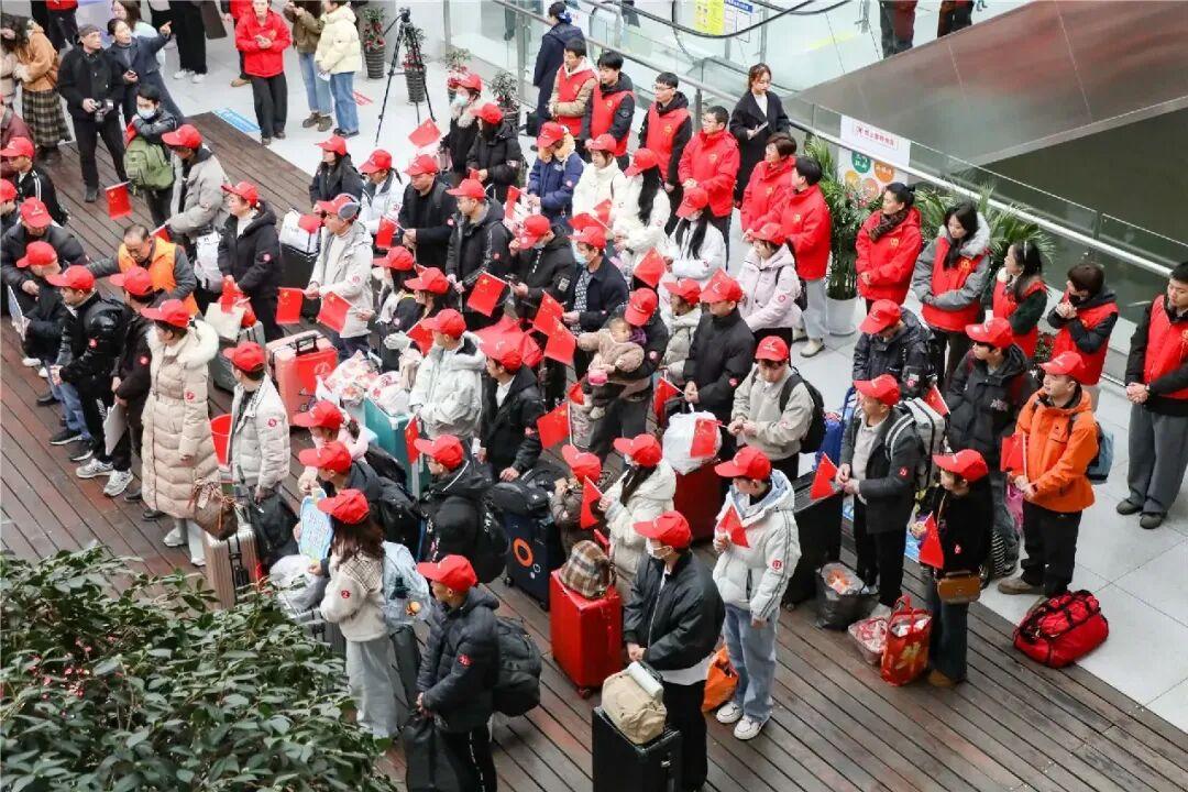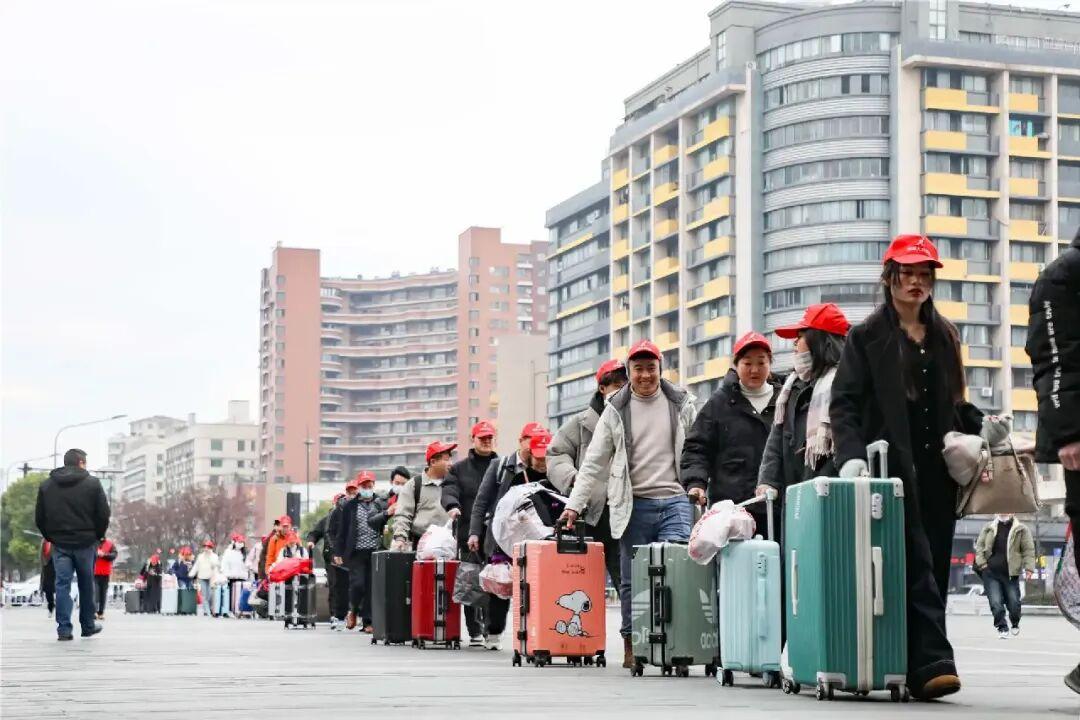 由赫章县人力资源和社会保障局主办、金华市锦程人才服务有限公司承办、婺城零工服务中心协办的2026年赫章籍在浙务工人员“专列+专车”联程返乡活动在此启航,活动为期两天,400余名务工人员及随行家属踏上春节返乡团聚之路。