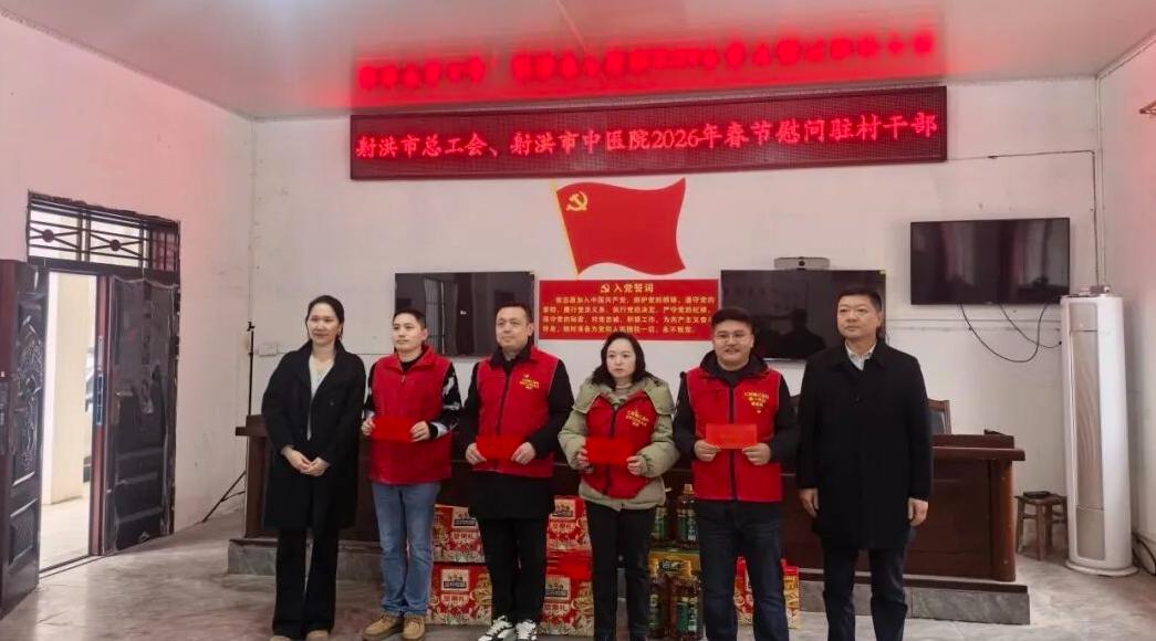 社区文化网(苏勤 谢涵)岁序更替,春祺已至。在2026年丙午马年新春佳节来临之际,射洪市中医院开展系列新春慰问活动,将党和医院的关怀温暖精准送达困难群众、驻村干部、中医专家、退休老同志及困难职工心中,以实际行动践行公益初心,深化乡村振兴帮扶实效,凝聚奋进合力。