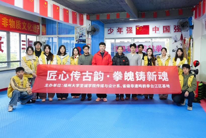 为深入探寻非遗文化价值,感受传统武术的精神内涵,“新脉相传”实践队来到福州市台江区的省级非遗鸣鹤拳基地,进行文化实践活动。 活动伊始,林涛先生首先为实践队员们系统介绍了鸣鹤拳的历史文化。他娓娓道来:鸣鹤拳是南派武术的重要代表,属于鹤拳的一大分支,发源于明末清初的福州地区,至今已有三百余年历史。其动作模仿白鹤的形态与神韵,讲究“以声助势、以形喻意”,注重刚柔并济、内外兼修。 在两位传承人的指导下,实践队员们开始学习鸣鹤拳的基础手法。“练习鸣鹤拳首先要学会‘沉肩坠肘’,保持身体中正。”林老先生一边讲解,一边走到队员中间,开始逐个纠正姿势。他来到队员身边,细致调整肘部角度与身体姿态,让大家亲身感受到“口传身授”这一非遗根本传承方式的细腻与温度。 为了更好地帮助实践队员们理解鸣鹤拳的精髓,林老先生亲自展示了部分拳法。整套动作行云流水,手、眼、身、气、力、功高度协同,将鹤的灵秀与拳的刚毅融为一体,尽显南拳名宗的阳刚之美。林老先生虽已年过七旬,但展示鸣鹤拳时依然精神矍铄,令在场所有队员为之震撼与敬佩。 活动结束后,实践队与两位传承人合影留念。通过此次亲身习练与深度对话,队员们不仅掌握了鸣鹤拳的基础技法,更对“身承”的内涵有了深切体悟。作为青年学子,我们虽未必以拳脚为业,却可以新媒体传播、创意设计、文化研究等多元方式,成为非遗活态传承的“当代身体”,让古老技艺在新时代找到青春的接棒之姿。