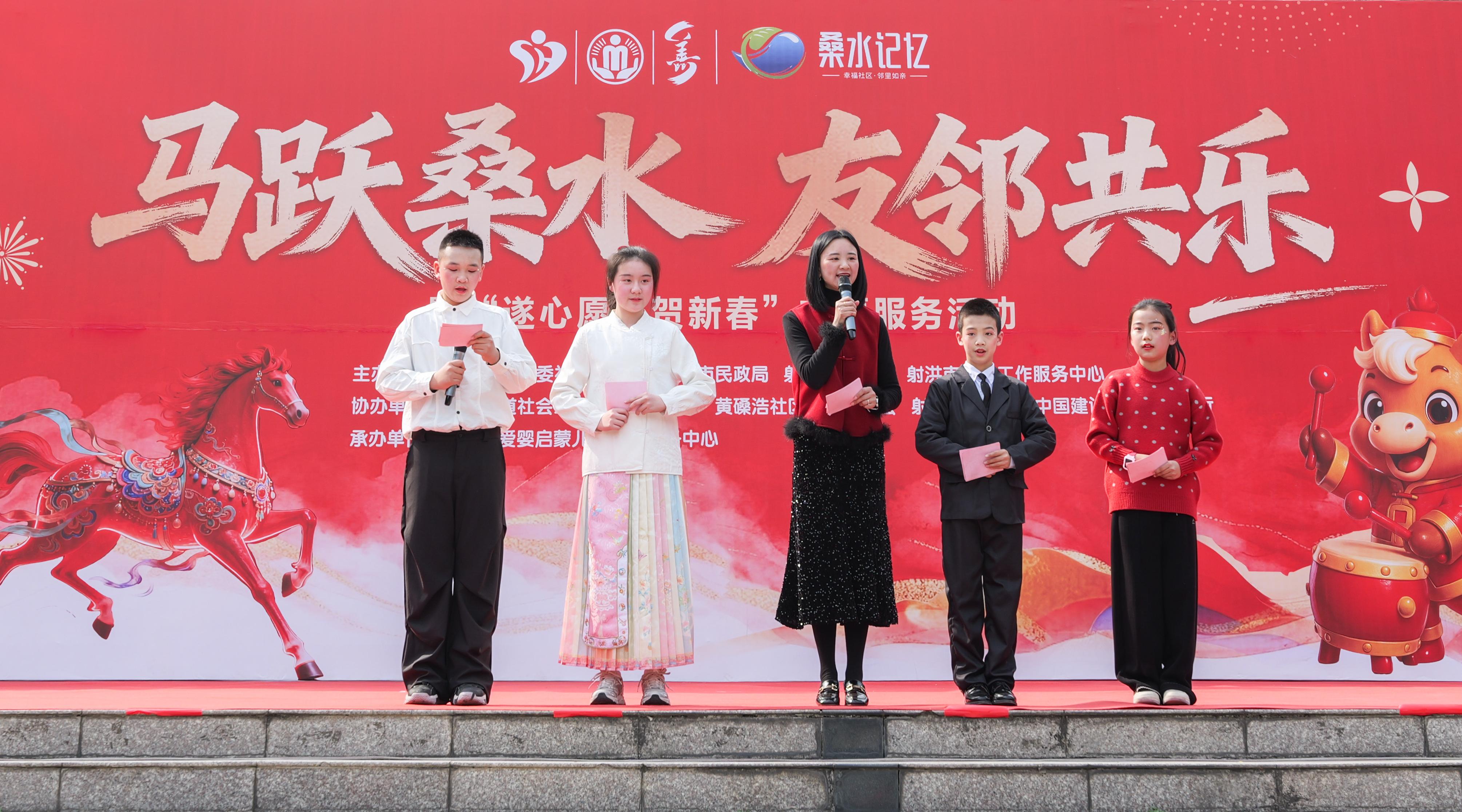 社区文化网(苏勤 谢涵)为深入推进射洪市2025年城乡社区治理优化提升行动“创特色”项目,落实“桑水岁月”计划、厚植“桑水记忆”社区服务品牌内涵,织密“一老一小”社会互助网络,2026年2月14日,“马跃桑水·友邻共乐”新春活动在未来广场温情启幕,此次活动以新春文化志愿服务传递基层治理温度,助力构建友邻善治的社区新格局。