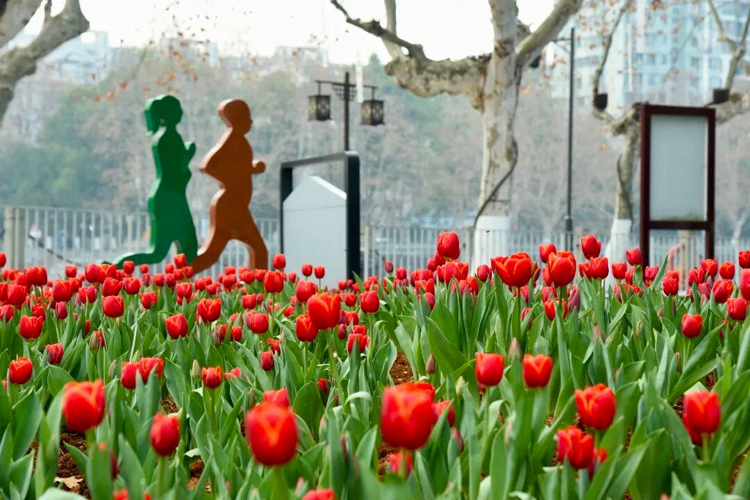 除了灯笼与剪纸,滨江广场上新布置的郁金香成为新春里一道亮眼的风景线,不少路过的市民纷纷驻足观赏、打卡拍照。据悉,这片郁金香共一万盆左右,2月9日刚刚完成布置。其中还有不少含苞待放的花蕾,这些未开放的郁金香将在春节期间陆续开放,持续增添春日色彩,成为市民新春里休闲赏花的好去处。