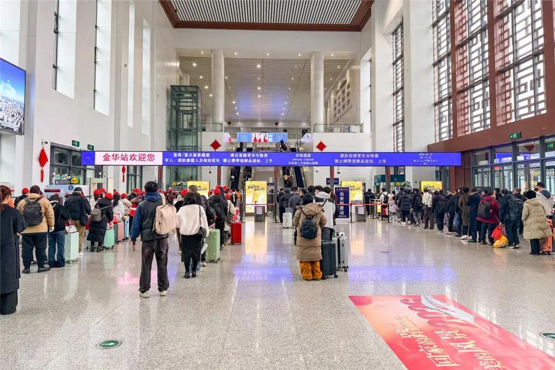 文梅的话道出了许多旅客的心声。作为金华重要的交通枢纽,春运期间,铁路金华站承载着大量旅客的集散与换乘。今年春运期间,铁路金华站预计每天平均开行299趟列车,发送旅客98万人次,其中2月9日是春节前出行最高峰,单日发送旅客3.6万人次。
